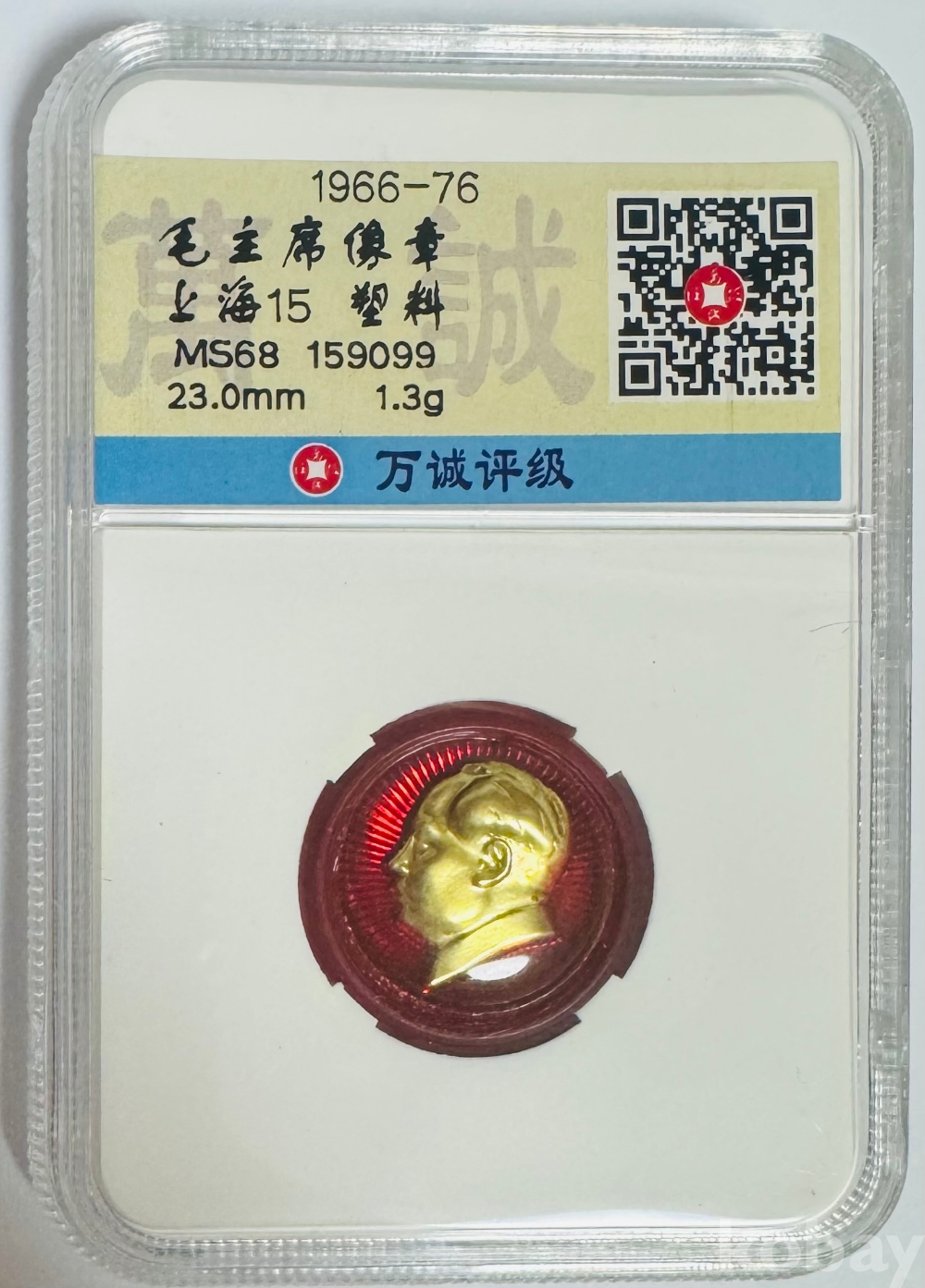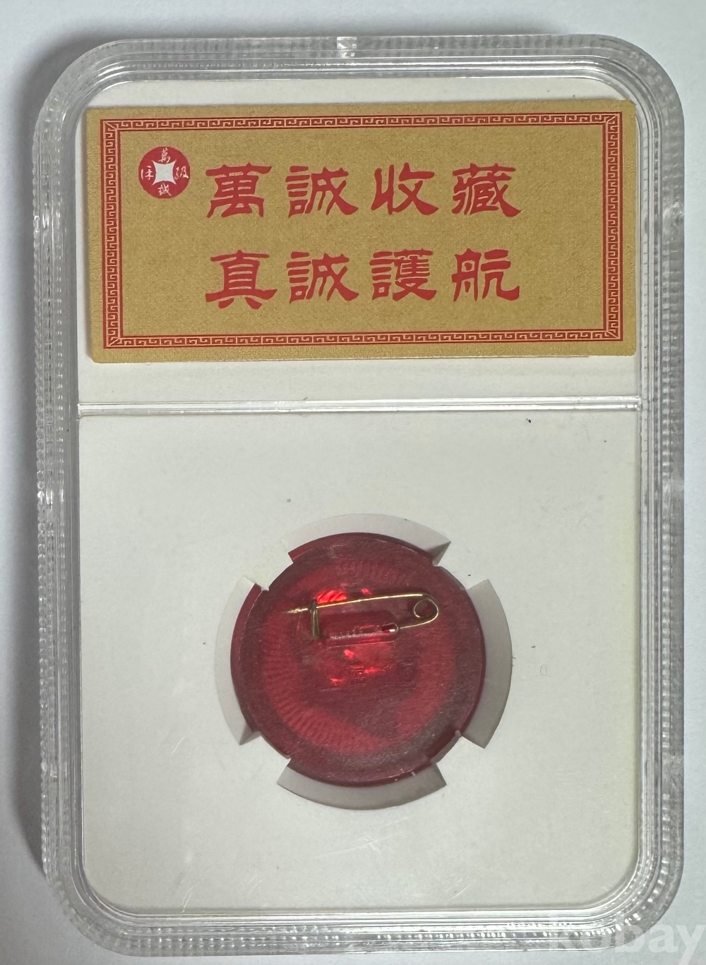 현재는 정치적 실용품이라기보다 중국 현대사의 격동기와 개인숭배 문화를 보여주는 역사 자료로 수집됩니다. 사진 속 개체는 색감이 강하고 도금부 광택이 남아 있어 장식성과 시대성이 잘 보이는 편입니다.