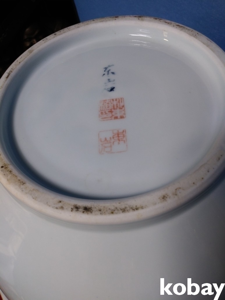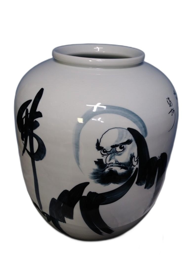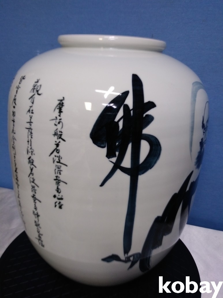 달마, 불자 글씨, 반야심경이 있는 도자기 입니다.