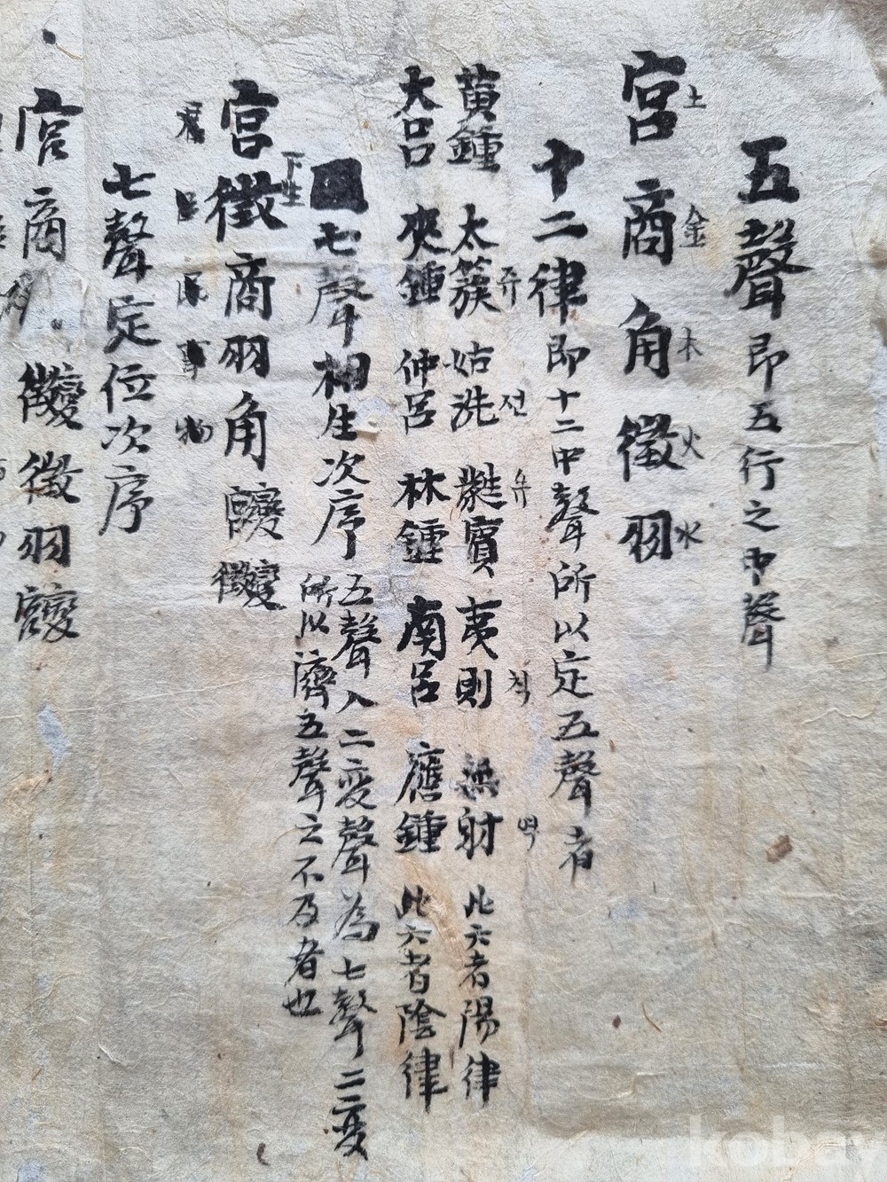 내용: * 오성(五聲): 궁(宮), 상(商), 각(角), 치(徵), 우(羽)와 오행(목, 화, 토, 금, 수)의 상관관계를 설명하고 있습니다.