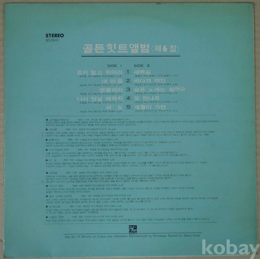 1977년 가수 송창식 골든 힛트 앨범 제6집 음반 LP