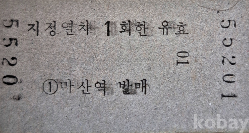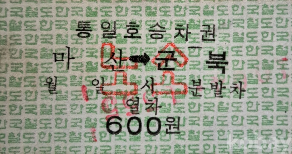 통일호 승차권 마산-군북 노소입니다. (사용제)