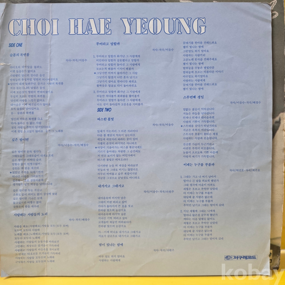 | 자켓상태 | EX : 약간의 마모, 모서리 찢김 존재 | 음반상태 | EX : 재생에 영향 없는 가벼운 기스 존재 | 발매정보 | 초반 | 가사지여부 | 유 |