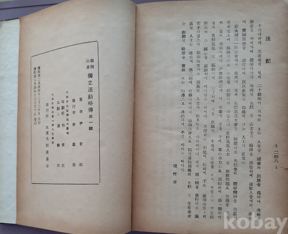 영남출신 독립운동약전 제1집-윤보현 저 1961년초판 순국선열추모사 발행