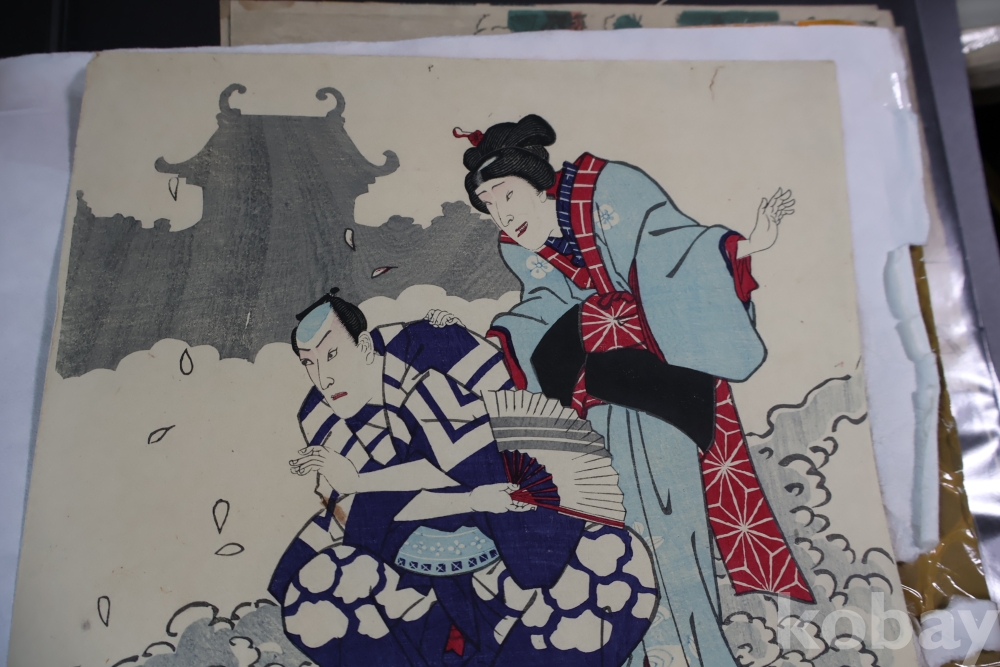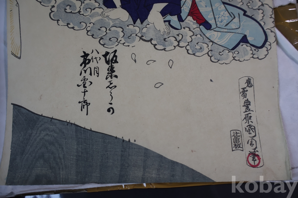 섬세 정교한 19세기 목판화 임니다 일본의 우키요에 목판화 임니다 Toyohara Kunichika (Japanese: 豊原 国周
