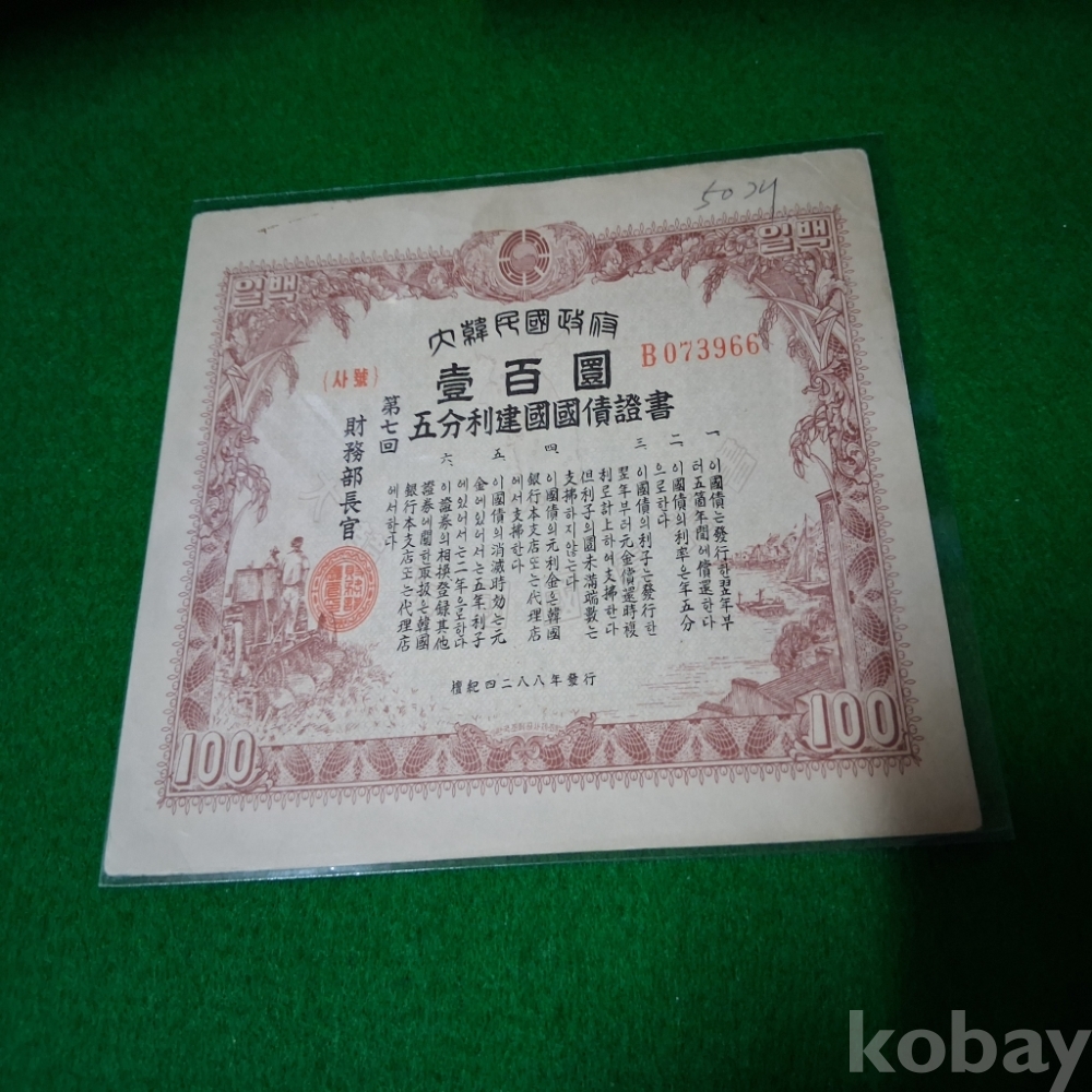 대한민국 5분리채권 7회 100환 사용제