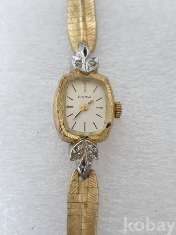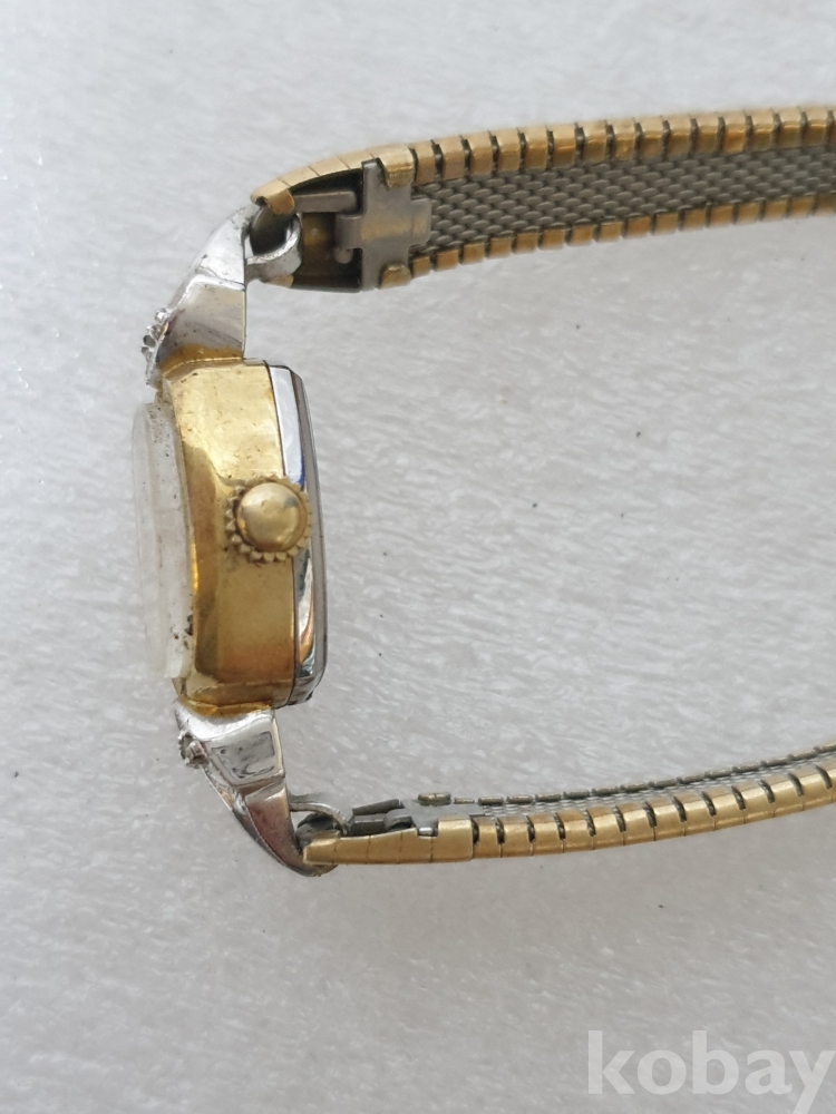 {천원경매} 4-2055 부로바 사각 금색줄 손목시계 (줄녹슴, 잠금 고장, 작동확인안됨, 정품확인불가)