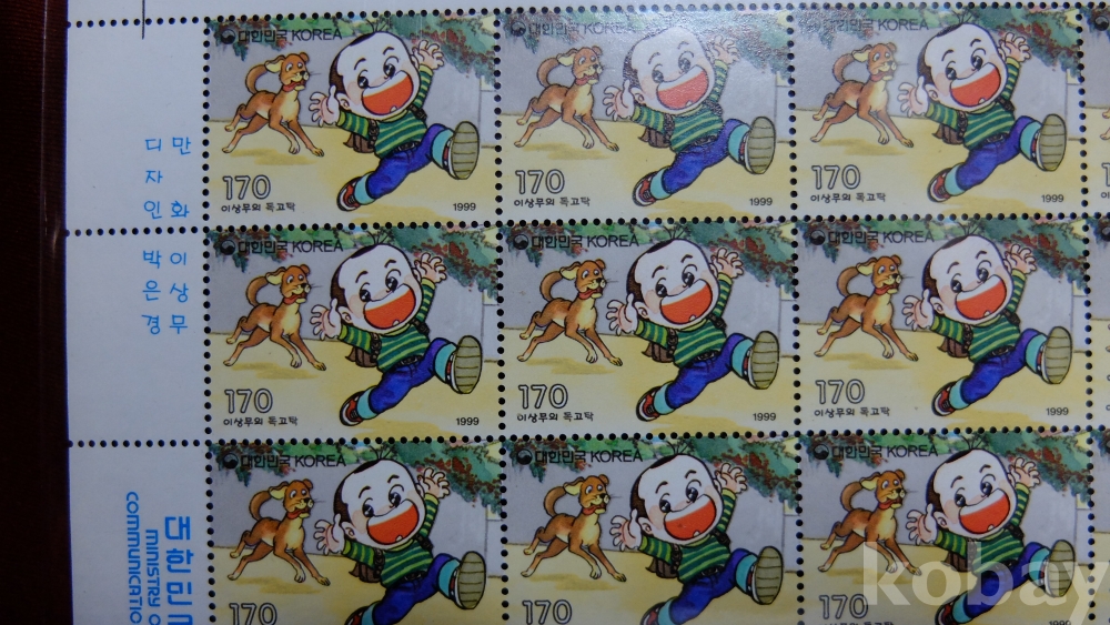 이상무 독고탁 만화 시리즈 우표 만화우표 한국 유명 만화작품 만화가 전지 우표 고전만화 한국 조폐 공사 제조 디자인 박은경