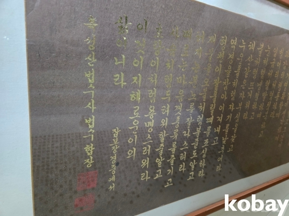 글분칠로 글씨와 달마 그림이 있는 액자 입니다.