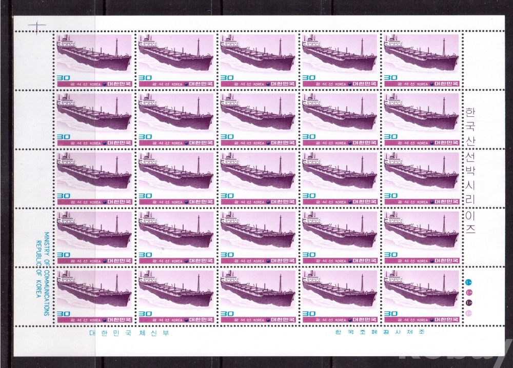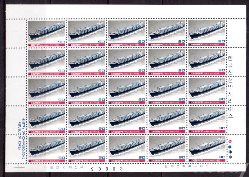 (한국전지) 1981.5.10 한국산 선박시리즈(제2집) 2완 sheet of 25 MNH