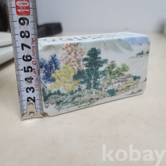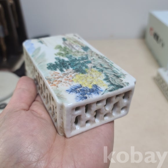 서예나 그림작업을 할 때 사용하는 문진입니다. 사각형태의 도자기에 그림을 그리고 채색을 하였습니다 문진 기능 뿐만 아니라 감상과 수집용으로 좋습니다. 직접 그린 것으로 투각 기법으로 예술성을 겸한 기물입니다