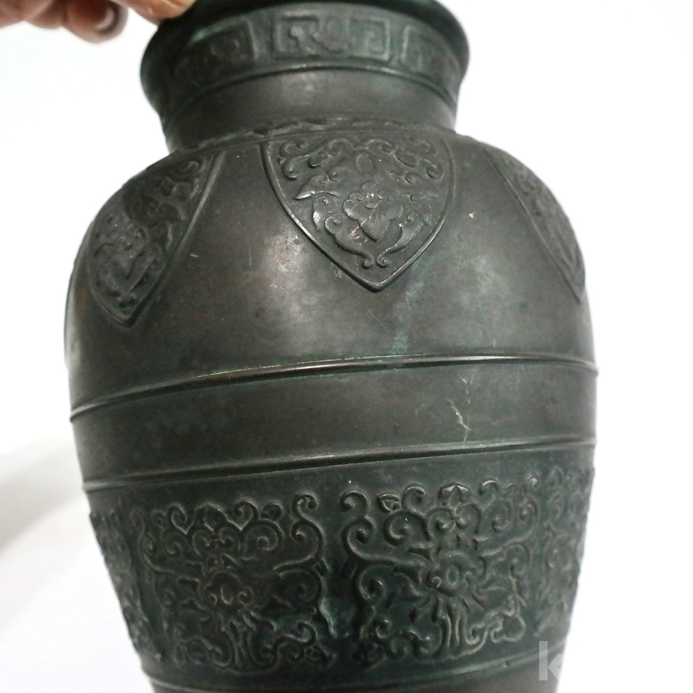 황동으로 만들어진 매우 무게감있는 화병 입니다.