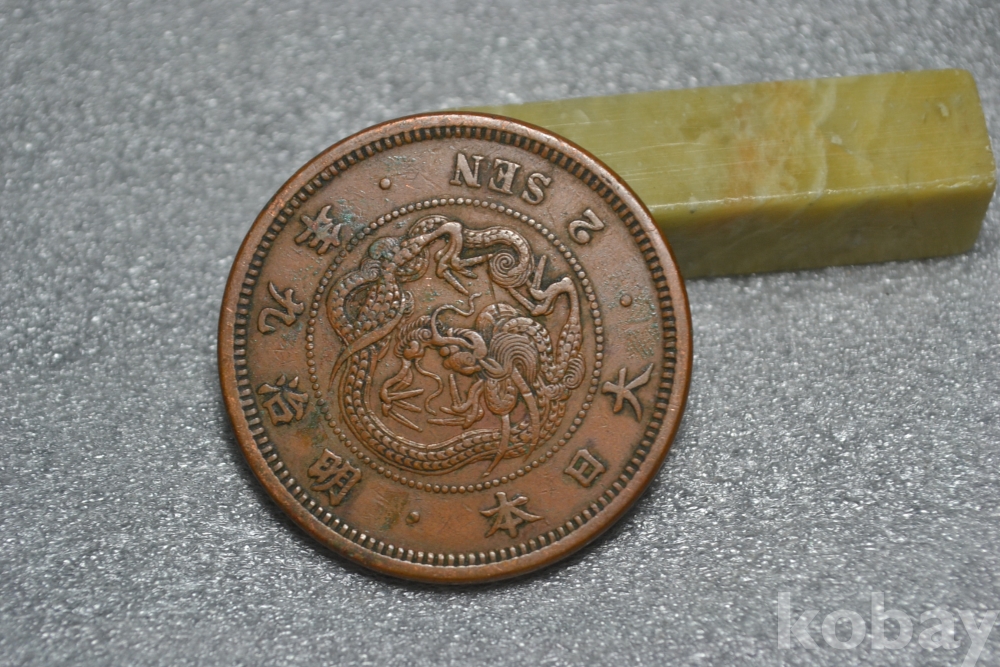 ㅡ> 100년 넘는 오래된 명치9년도(1876년도) 일본 대형 용 2전청동화 입니다.