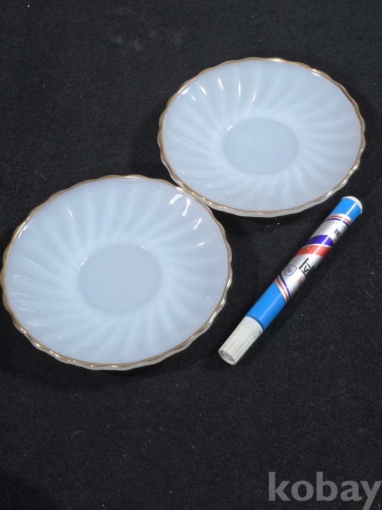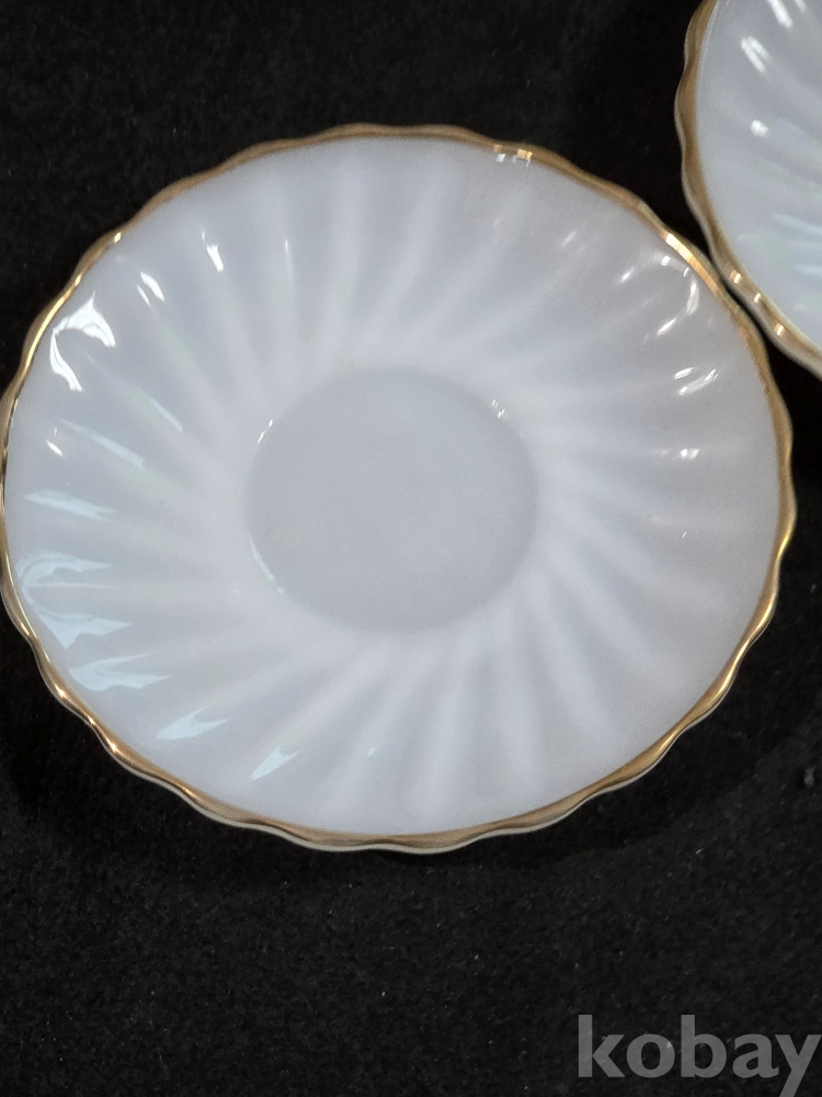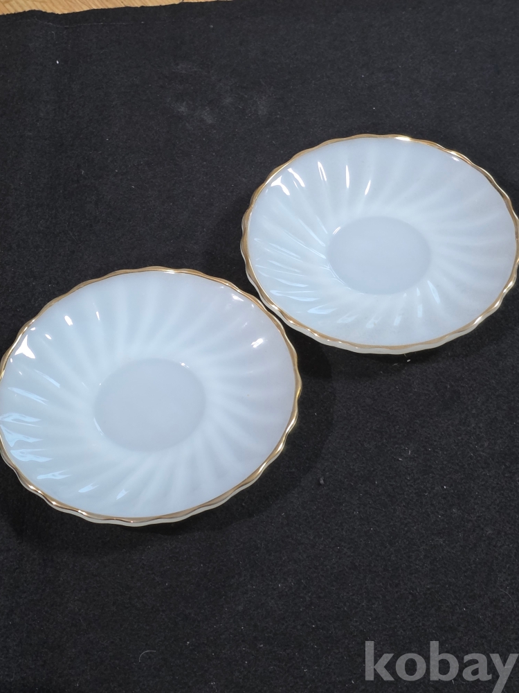 (((잔받침/소서))) 오래전 미국에서만든 Anchor Hocking (앵커호킹) 빈티지 빗살무늬 밀크 도자기 소서 (잔받침) 2개