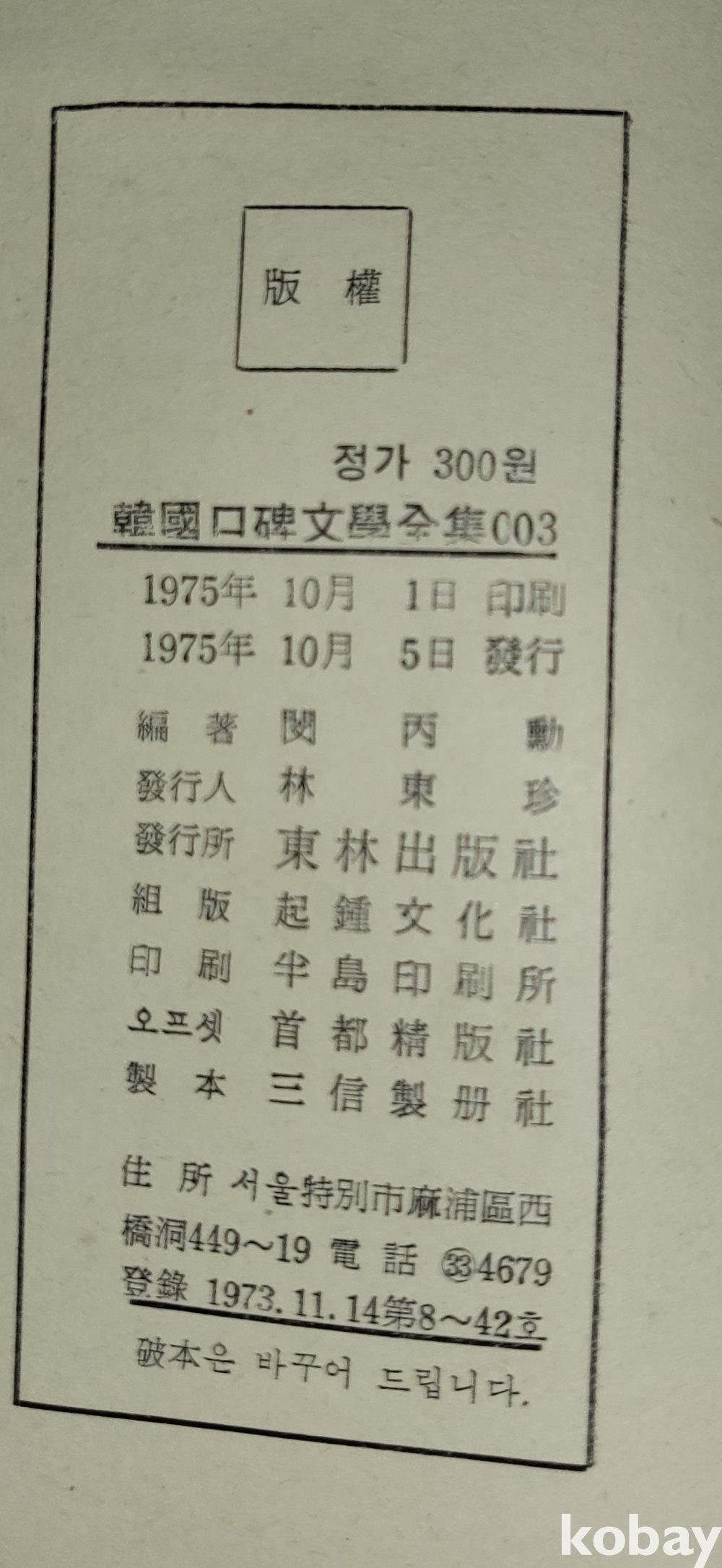 50년 전에 발행된 책으로 노후감과 탈색이 보임니다,