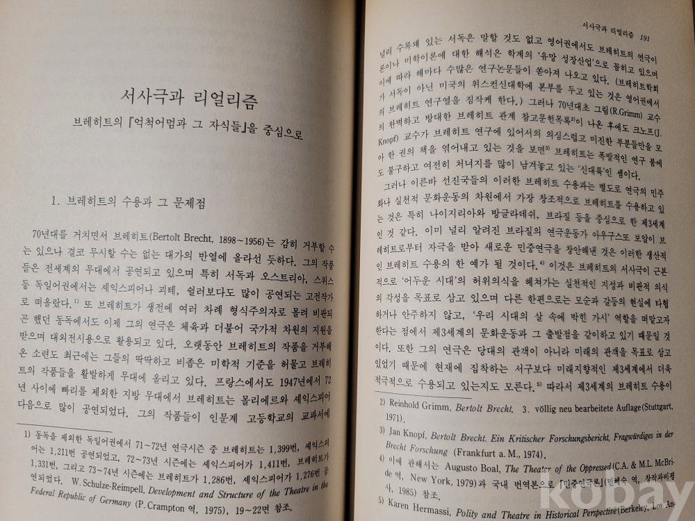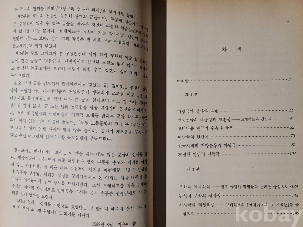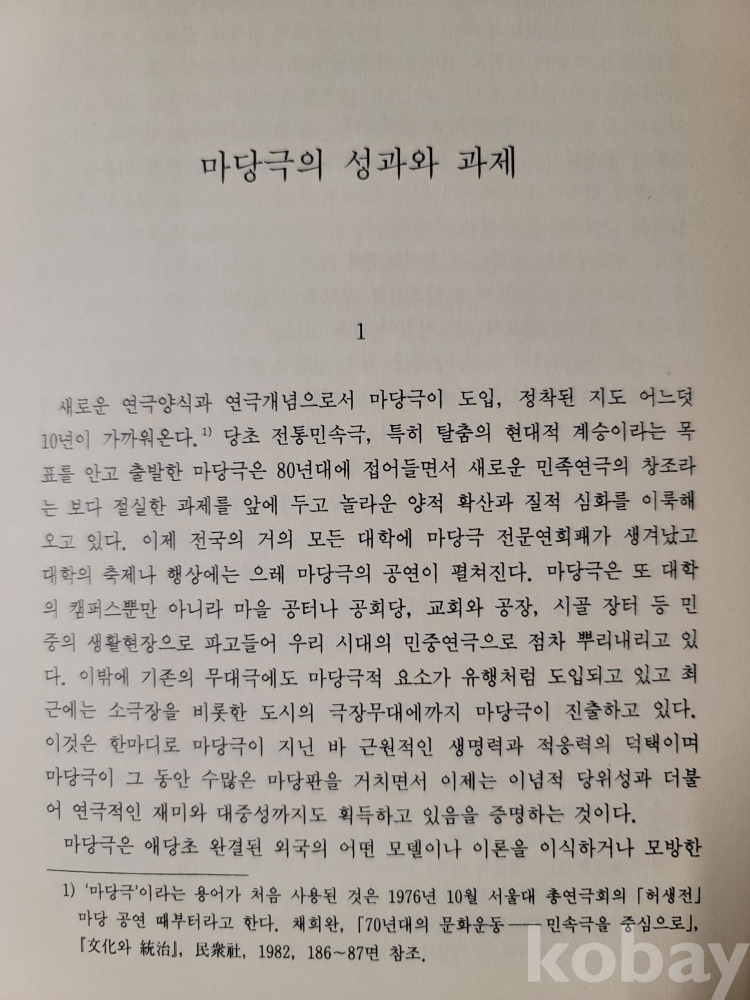 1989년 발간한 평론집 『서사극•마당극•민족극』