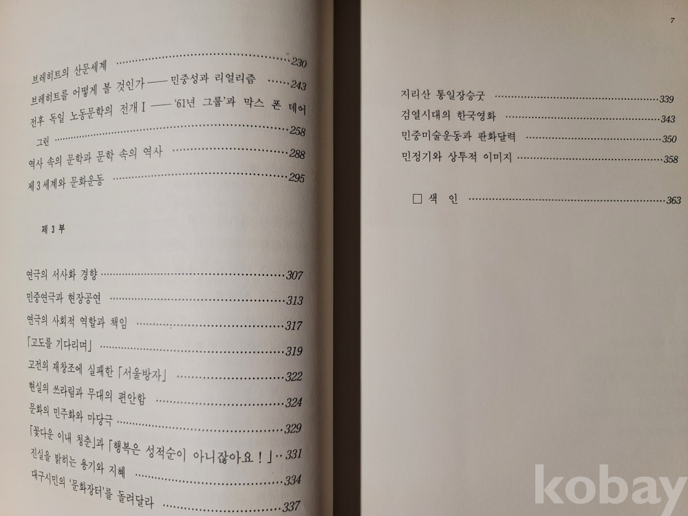 제3부는 주로 공연평인데, 영화•미술 등 문화운동에 관한 글도 덧붙임.