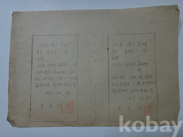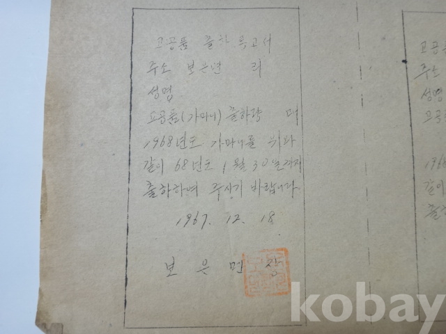 고공품 (가마니) - 출하 통고서 (1967년, 보은면장)