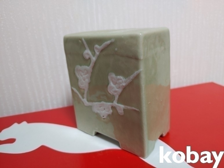 매화 문양 사각 연적 도자기 입니다.