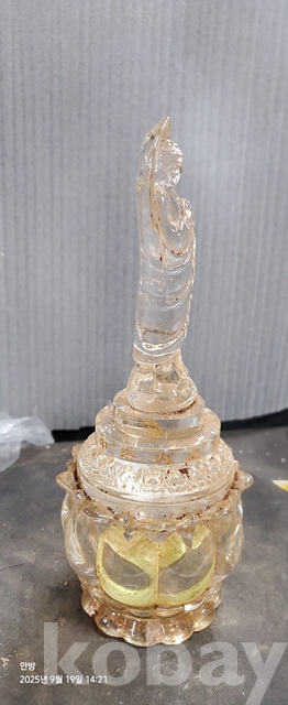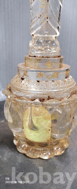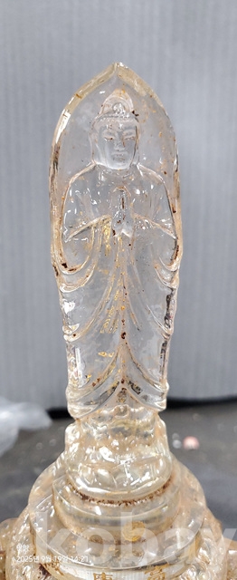 w-55.오래된 연화위에 부처님조각된 사리가들어있는 수정사리탑