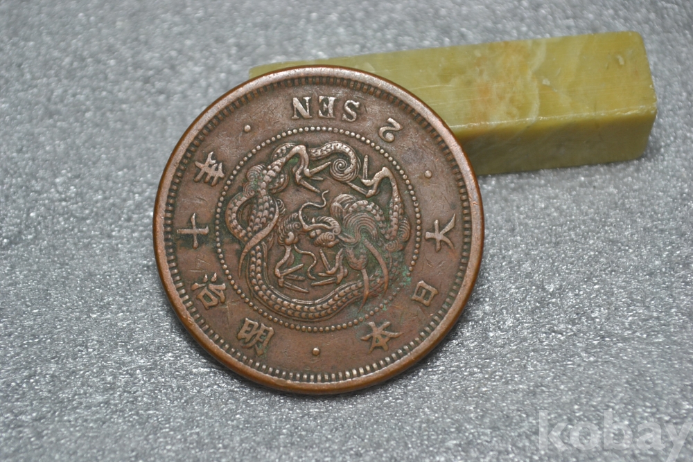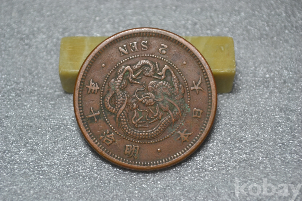 ㅡ> 100년 넘는 오래된 명치10년도(1877년도) 일본 대형 용 2전청동화 입니다.