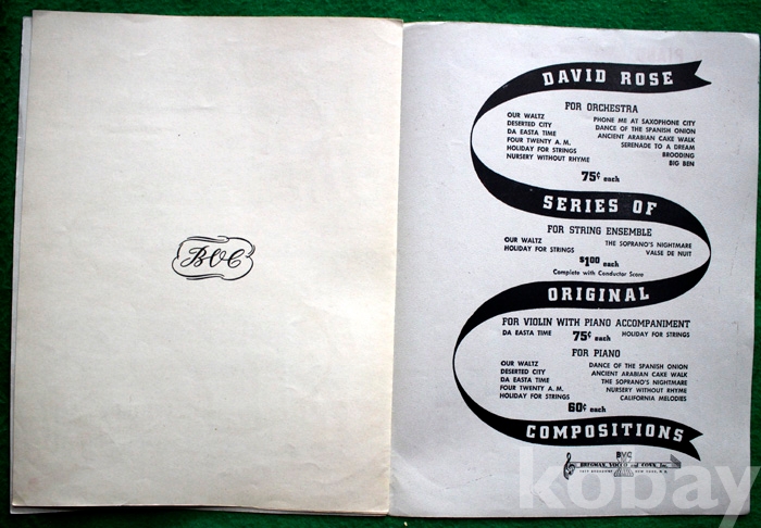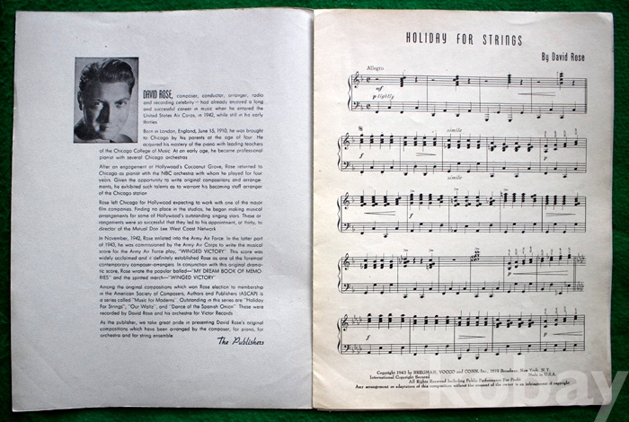 (오래된 피아노 악보) Holiday for strings - 1943년. 미국발행...