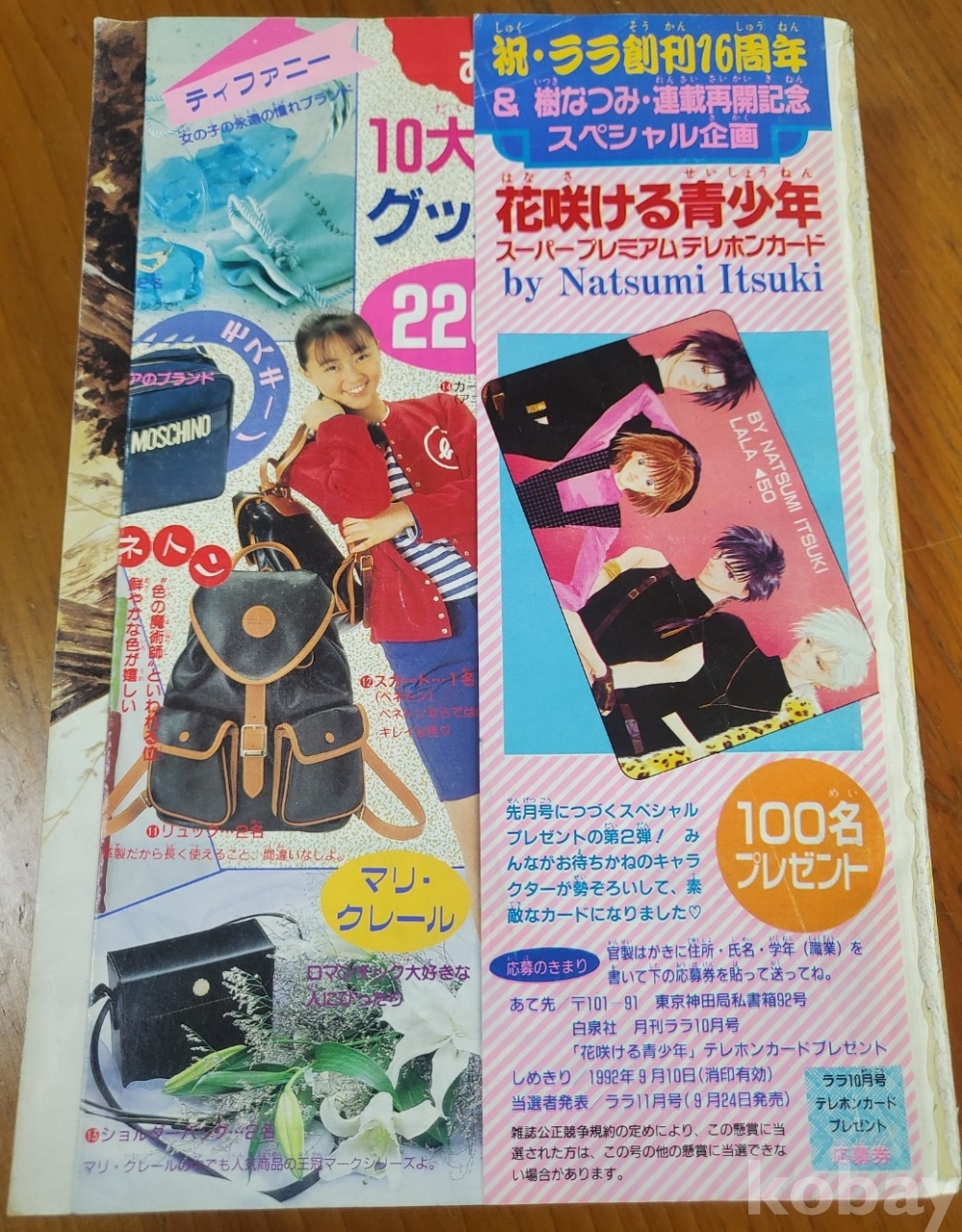 1. 월간 라라(통권 216호), 발행 하쿠센사(白泉社), 1992년, 508쪽, 일본판, 사진 참조