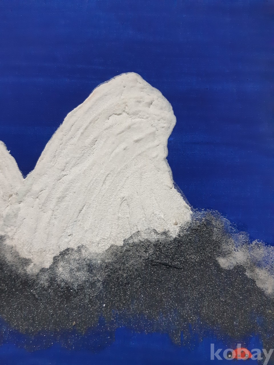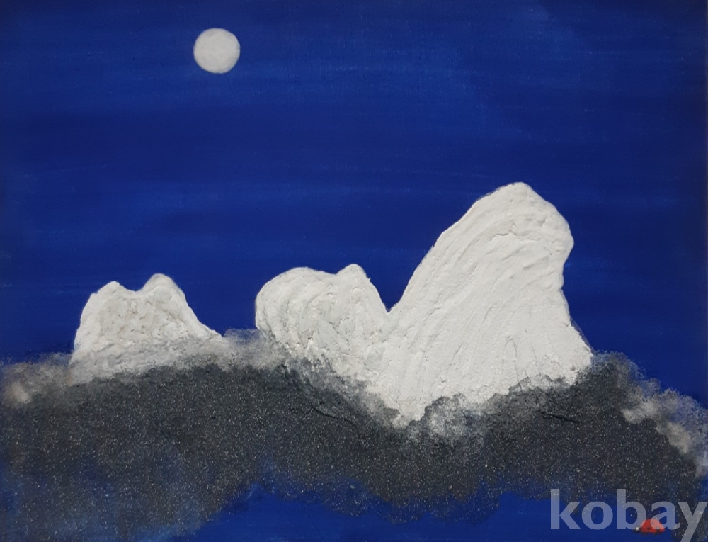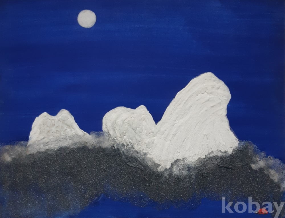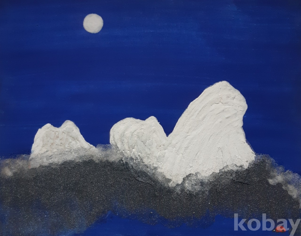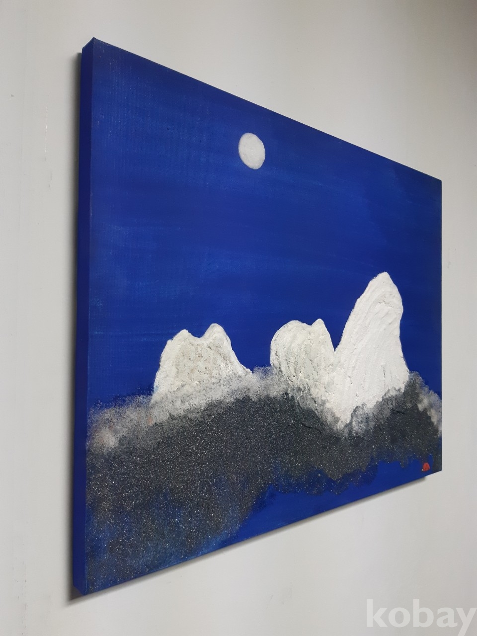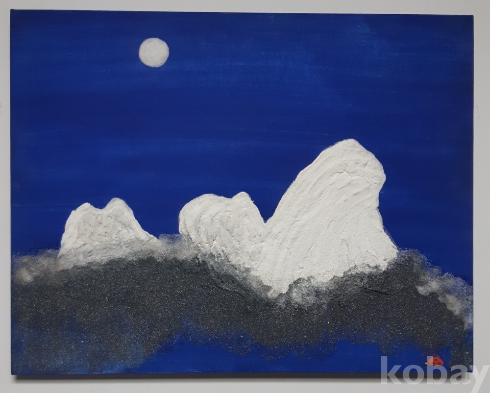 설악사계 작품은 석채와 혼합재료로 이용하여 작품의 질감을