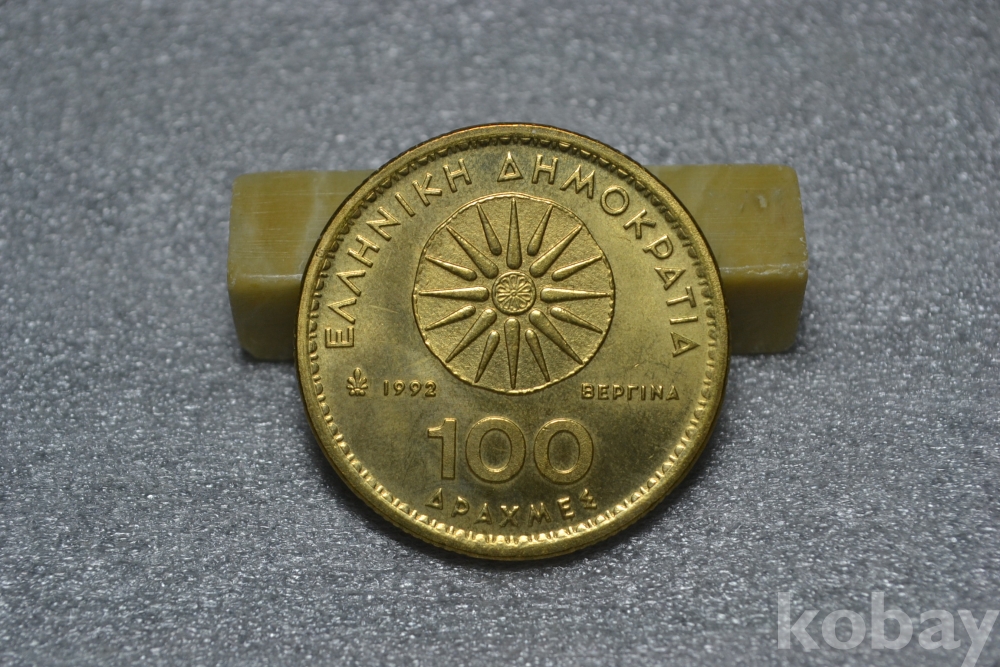 " 광택이 살아있는 귀한 극미품이상~ 귀한종류(1992년도 고액권 100드라크메스(Drachmes)) ".. " 29 mm 대형 큰지름 ".. " 1992년도 그리스 고액권동전 100드라크메스 황동화 ".. 오래된 1992년도 그리스 100드라크메스 동전 / 도안문양 좋은 보존상태