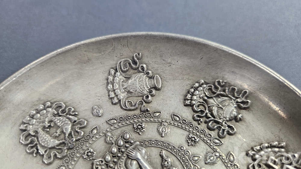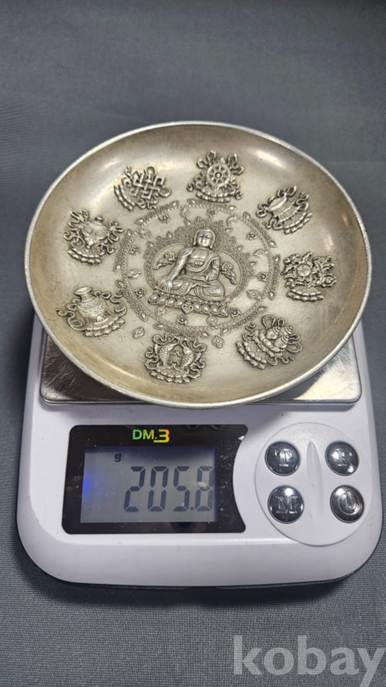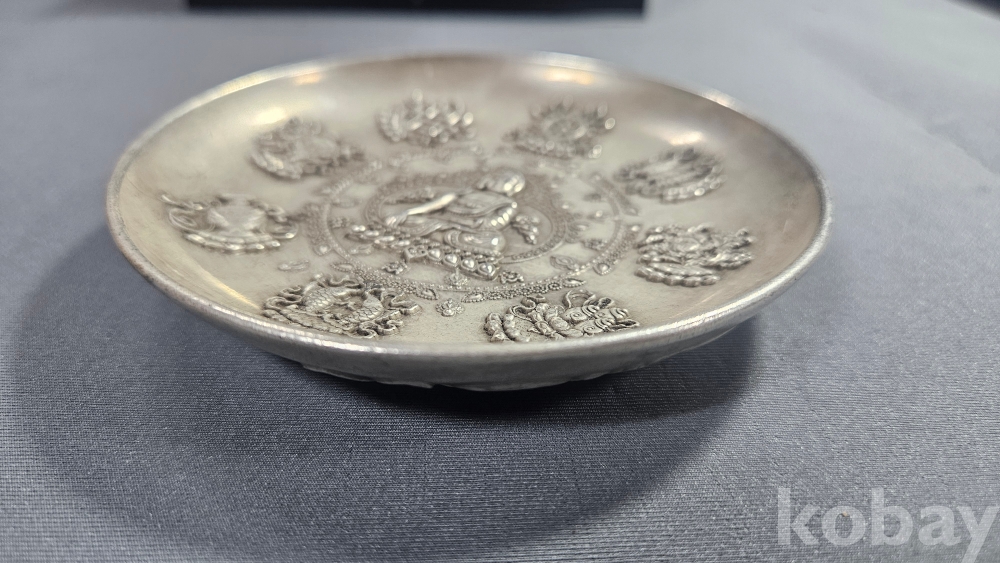 자석에 반응하지 않으며, 백동재질로 보여지는 접시 입니다.
