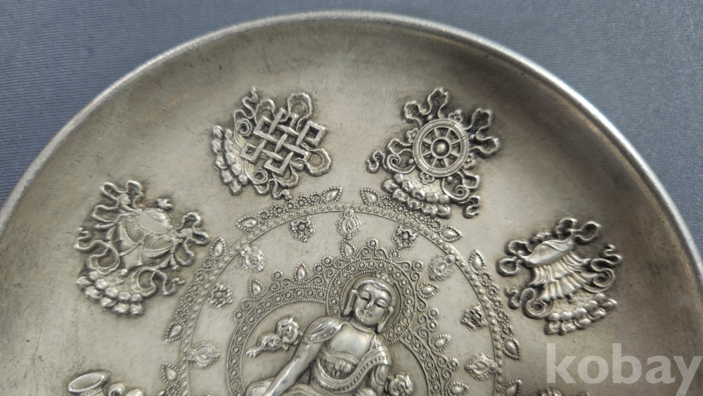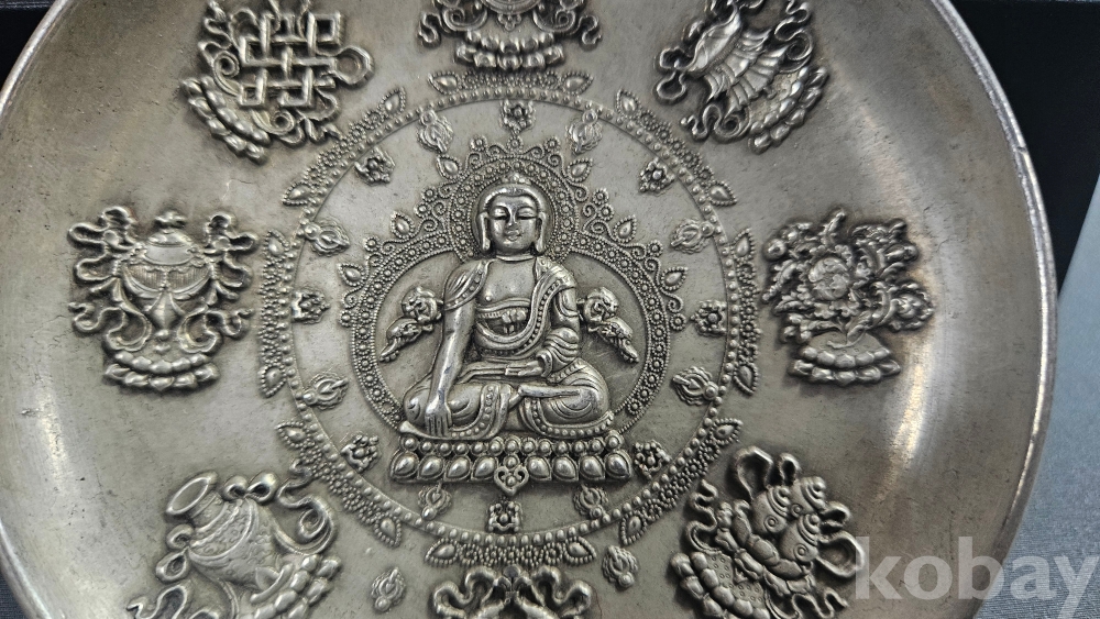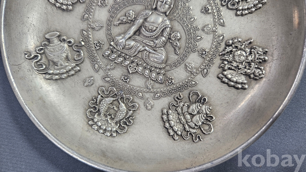 중앙의 석가모니 부처님 주위로 8가지의 보물문양이 들어있습니다.