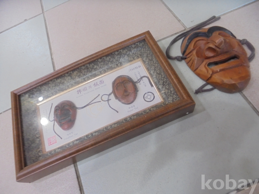 한국의 가면 안동하회탈 문화재제121호 주요인물인 양반과 부네탈을 인가을받아 체계적으로 만들어 판매홍보하는액자와 나무로잘만든큰 양반탈로