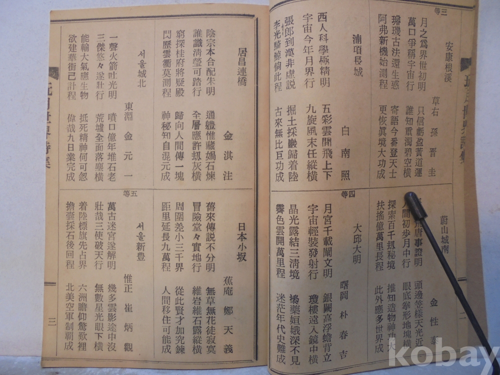 시집의 주제중 하나로 보이는 완월세계는 우주선이 달세계를 정벌하니 라는 구절이 포함되어 있으며 전통 한시의 형식을 빌려