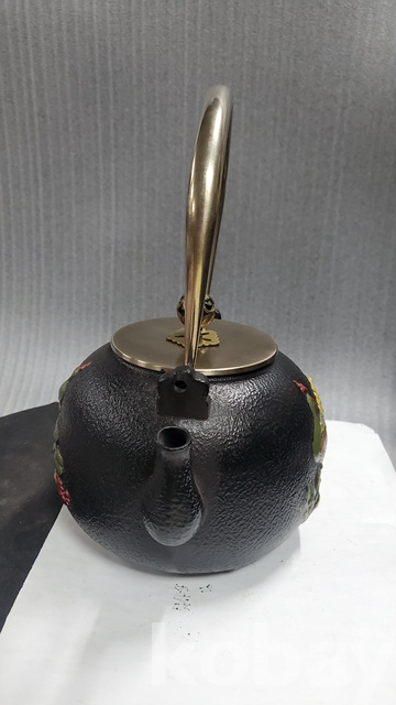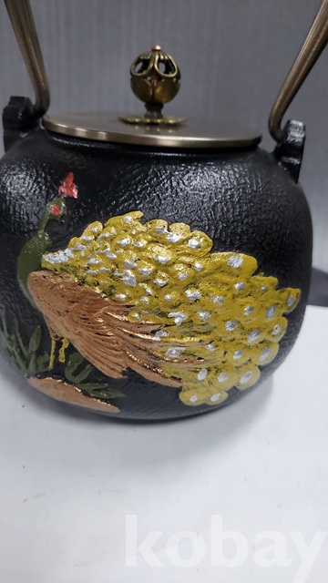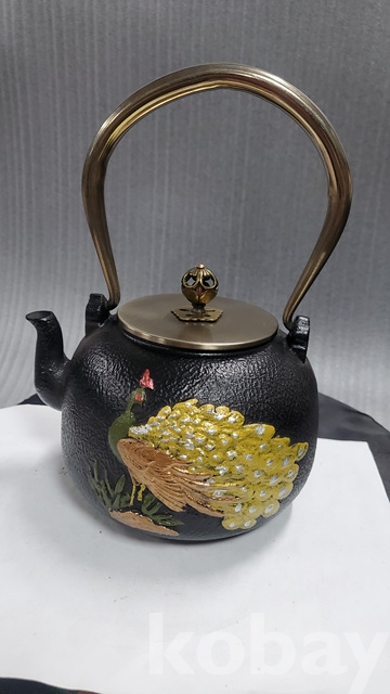 a-162.두껑에 용문당 낙관이있는 공작문 무쇠찻주전자
