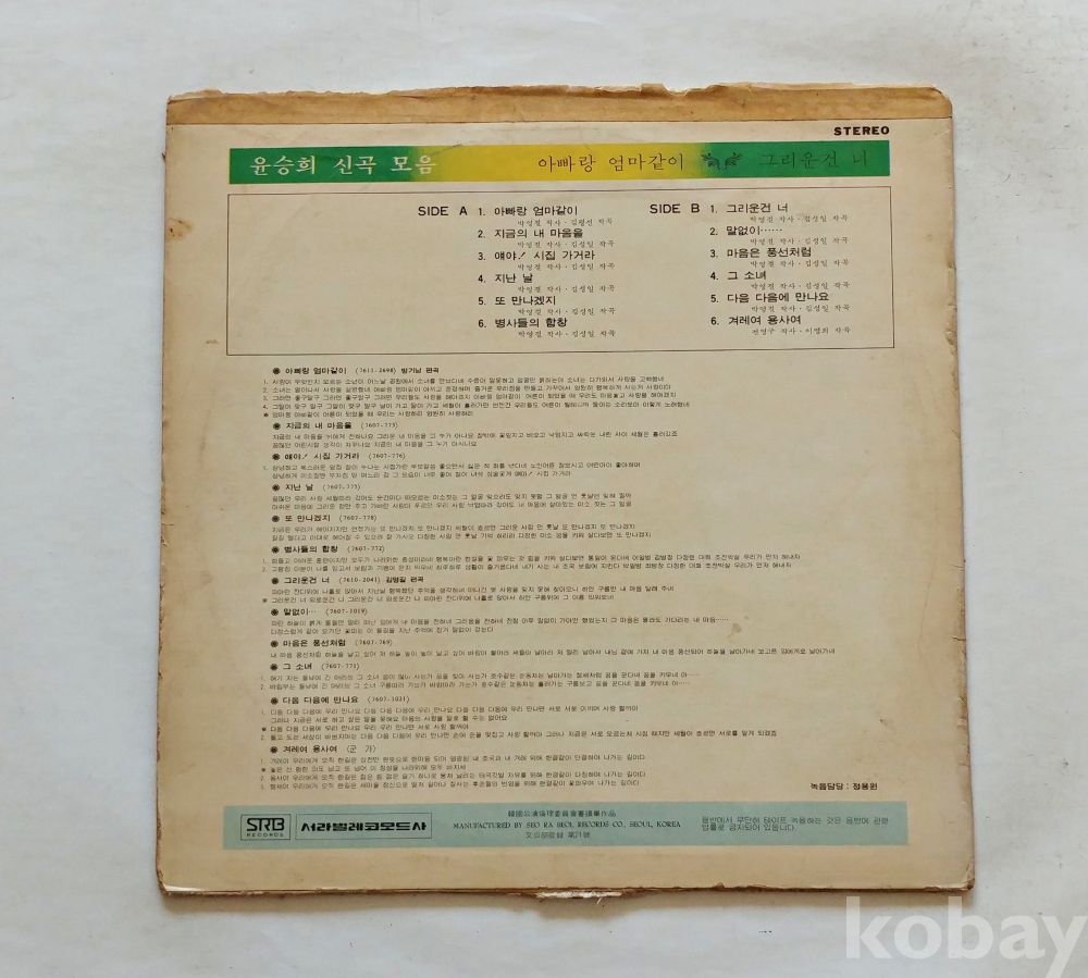 EX : 약간의 마모, 모서리 찢김 존재 음반상태