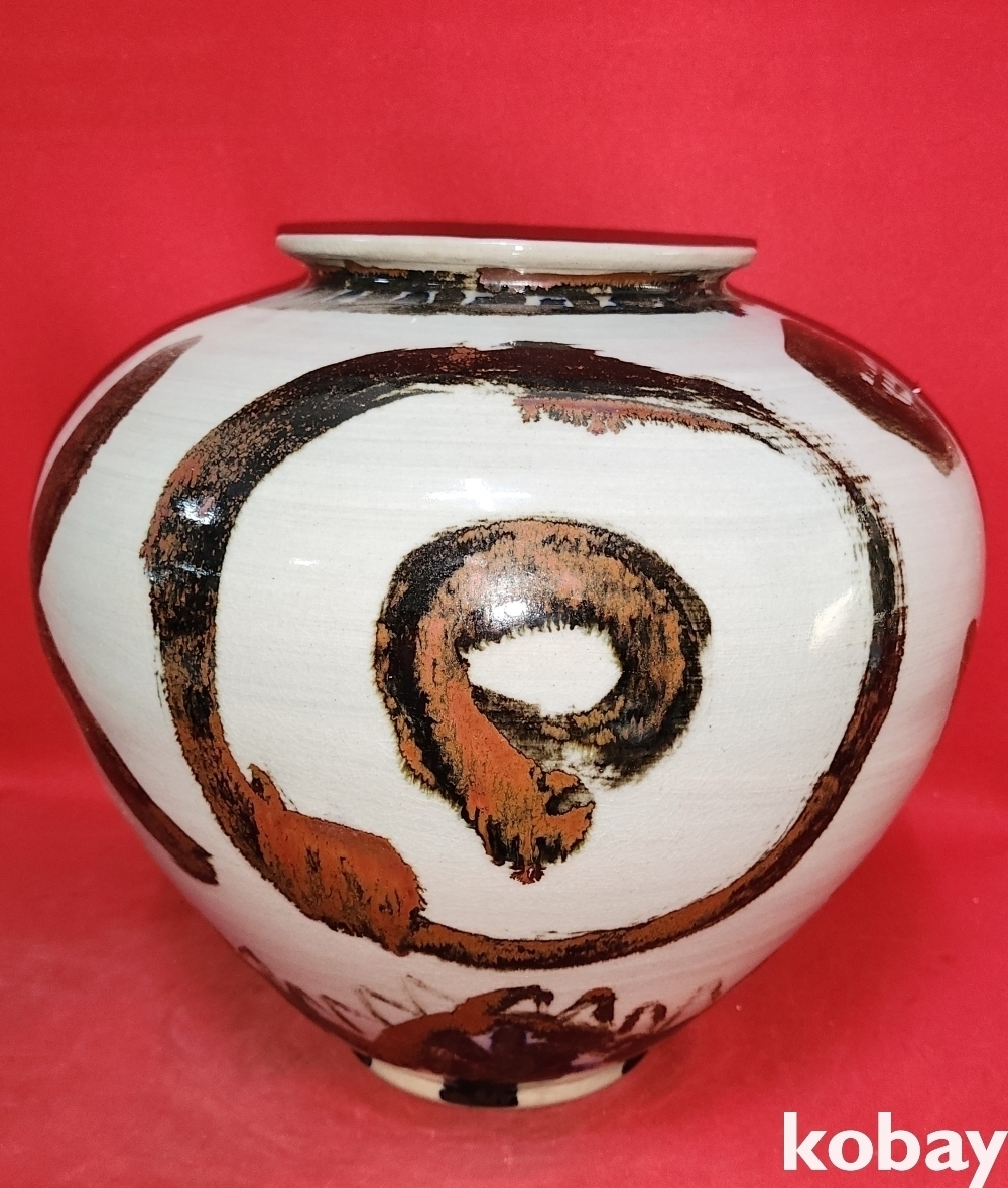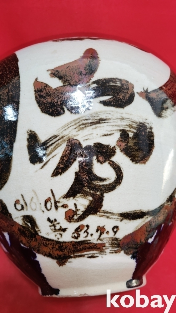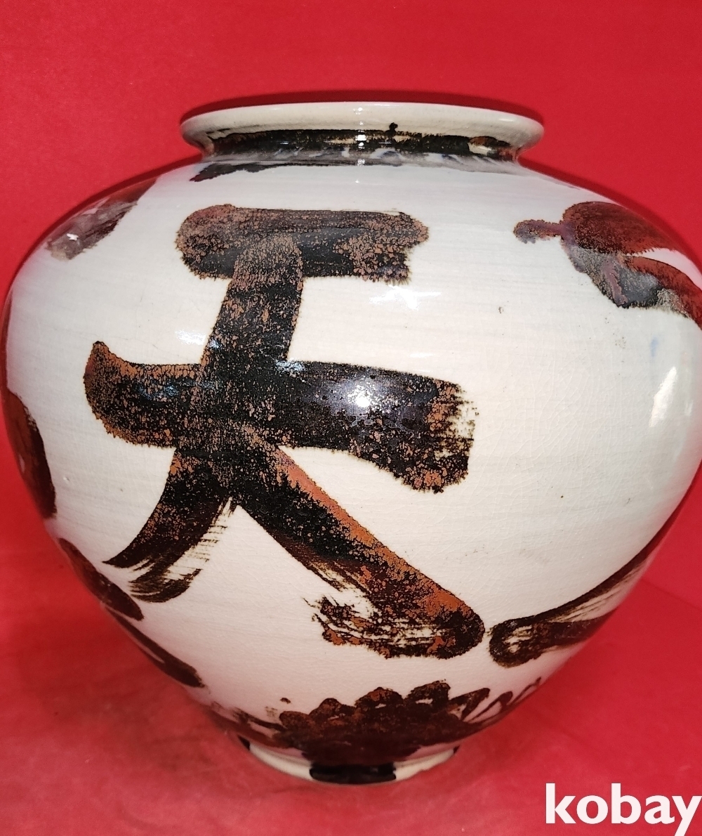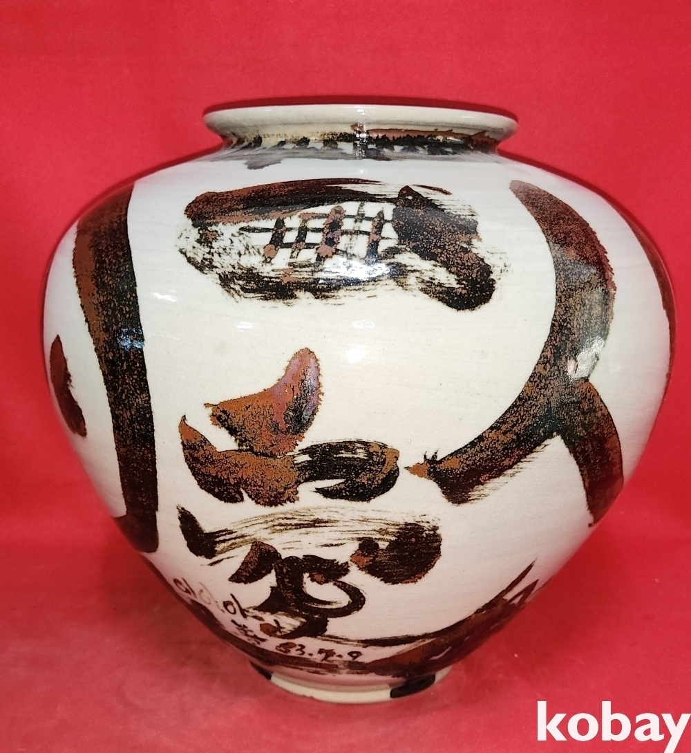 유명 도예가 鮮 1983년 作 철화 문자문양 항입니다,