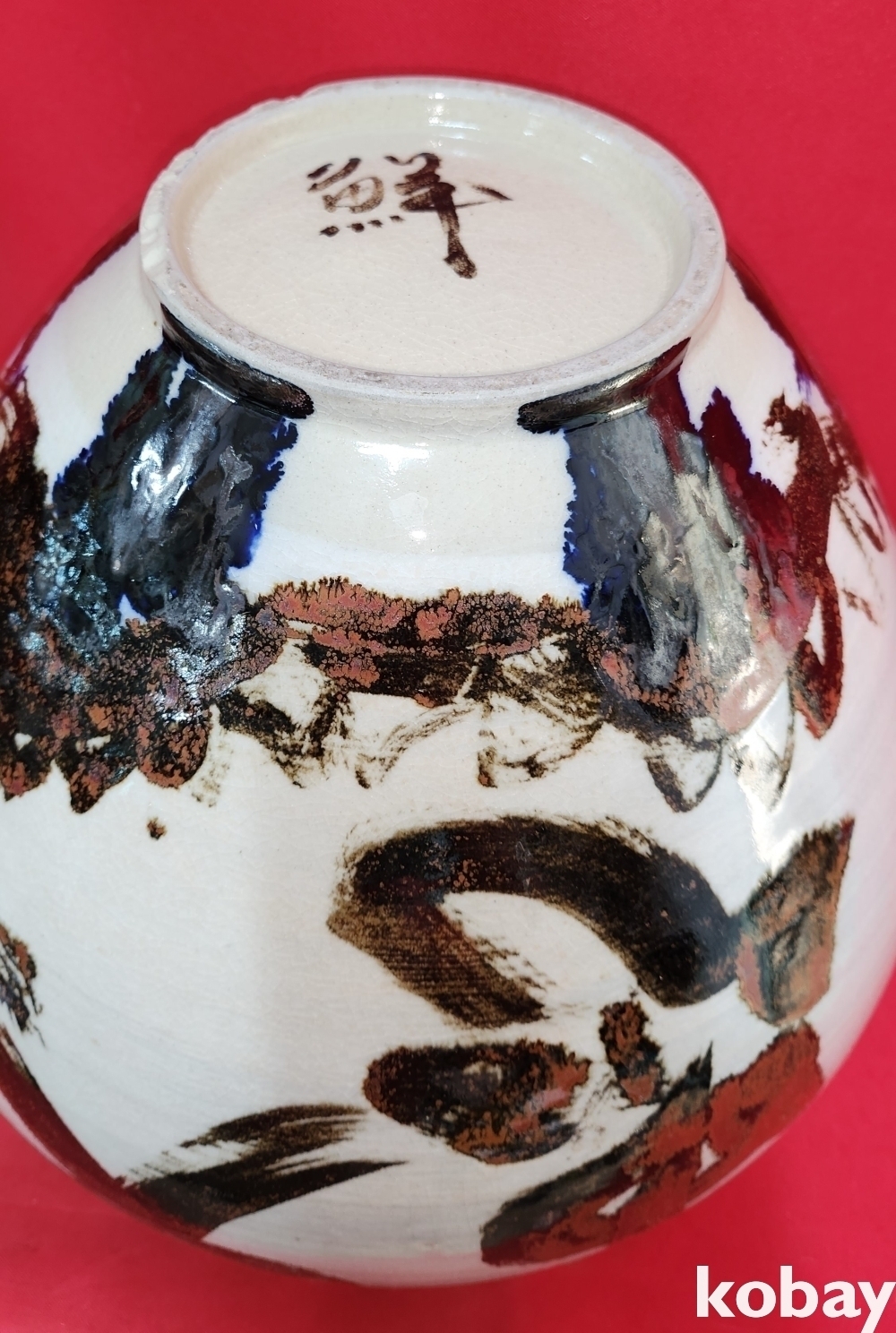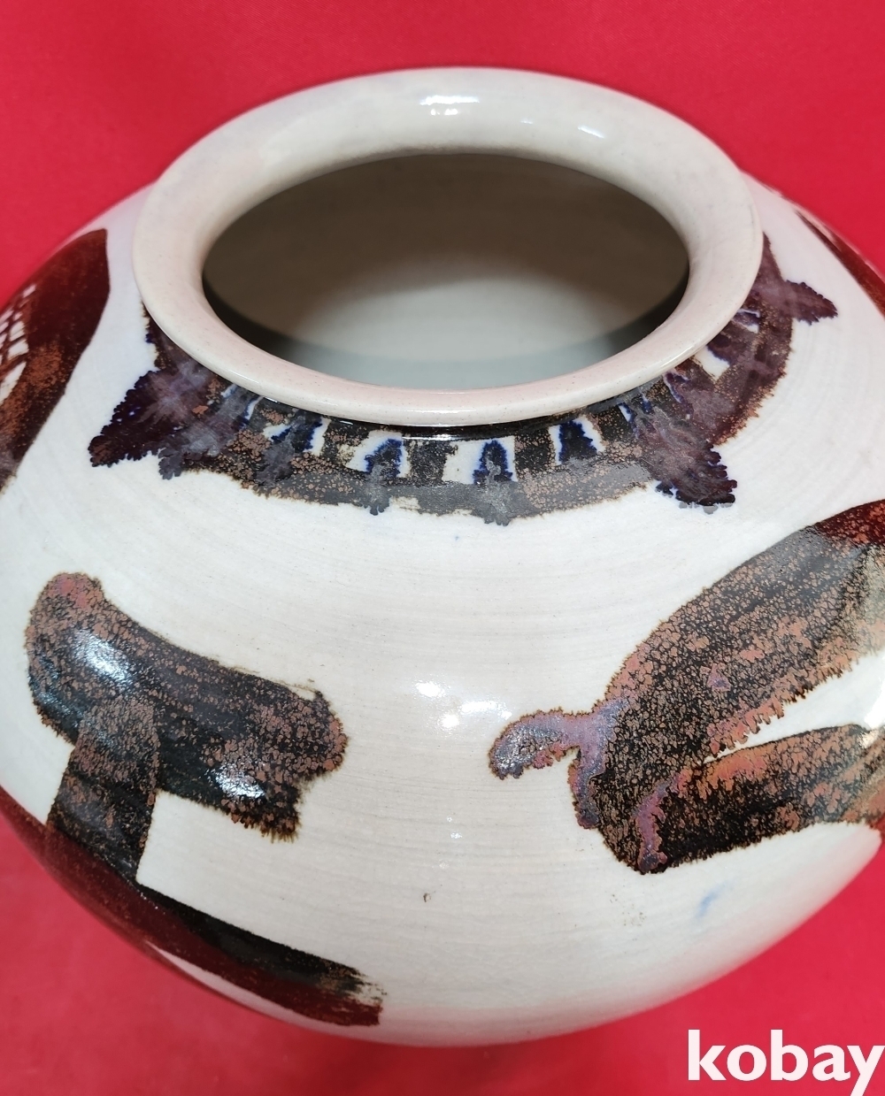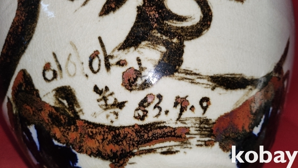 유명 도예가 鮮 1983년 作 철화 문자문양 항입니다,