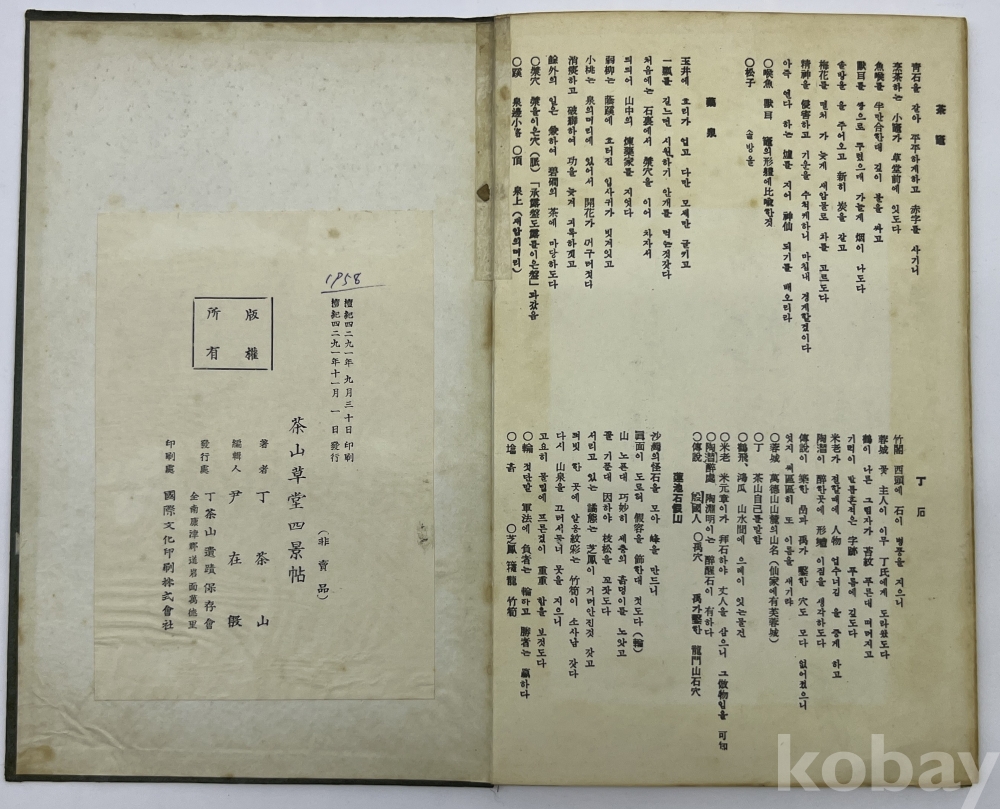 물 품 명 | <취향지가> [71] 1958년 정다산유적보존회 발행 비매품, 다산 정약용의 [사경첩(四景帖)] 영인본 1책 | |||||