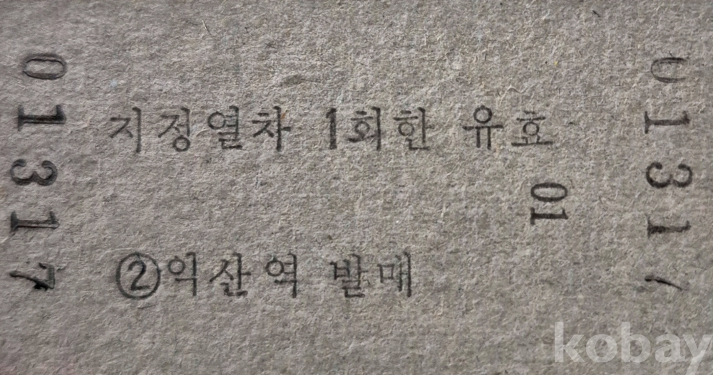 통일호 승차권 익산-여수 노소입니다.