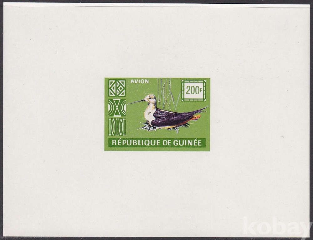 (하늘천) 기니 1962년 200fr, 야생동물, 동물상(動物相), 새, 장다리물떼새, 미발행 그린 디럭스 프루프