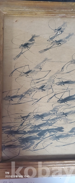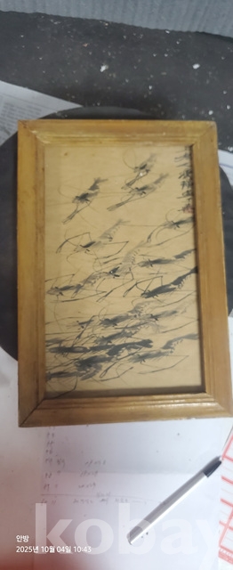 k-64.오래된 액자에담긴 제백석의징거미 (실체그린그림.미감정)
