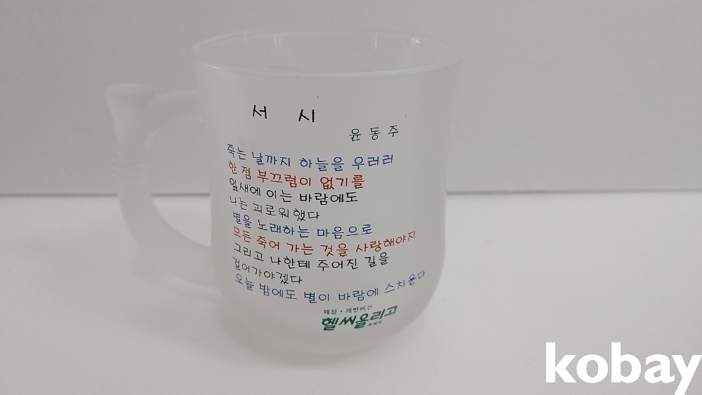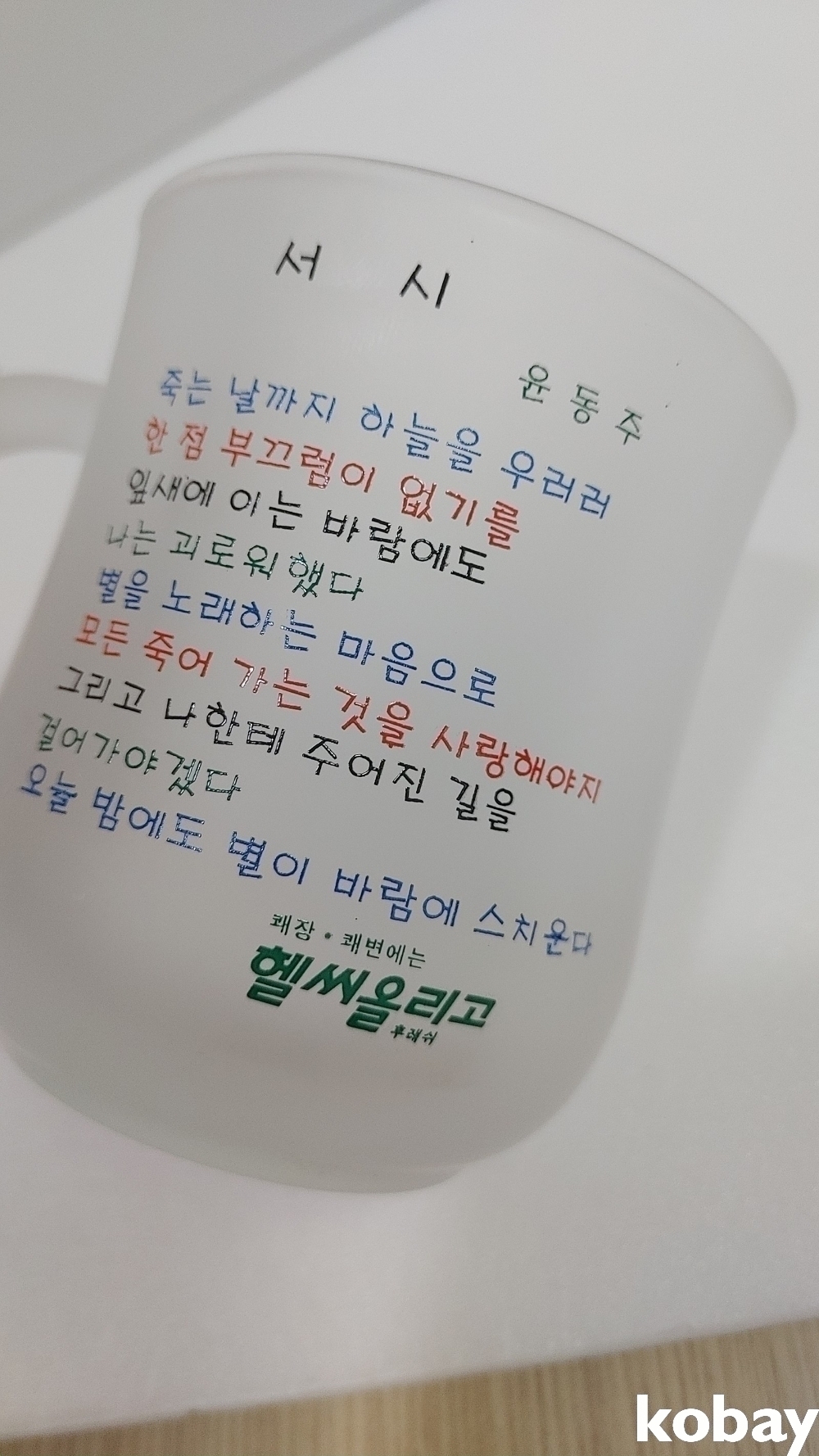 예전 헬씨올리고 윤동주시인 서시 음료수잔 입니다