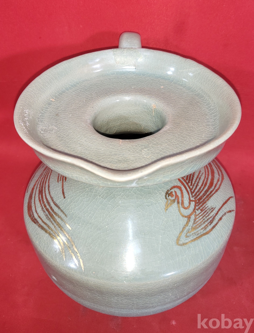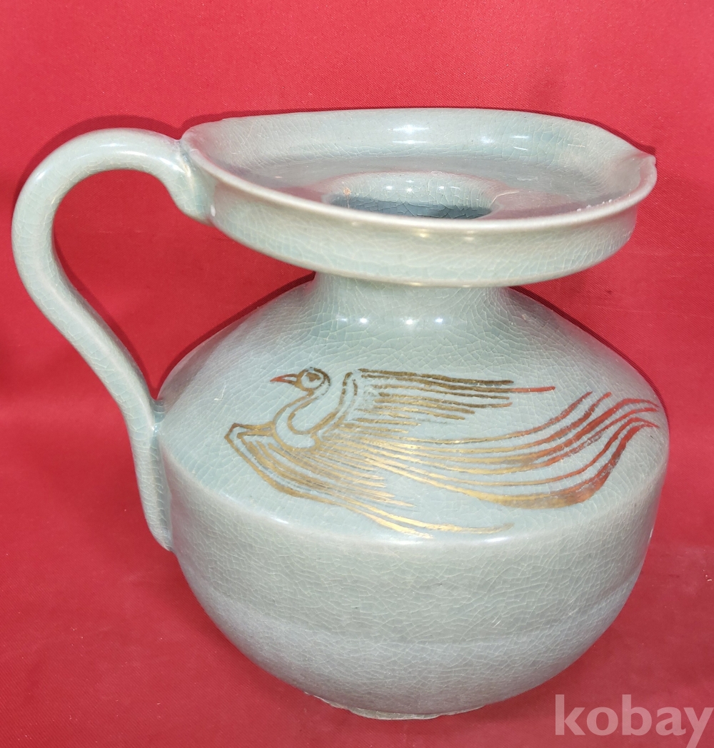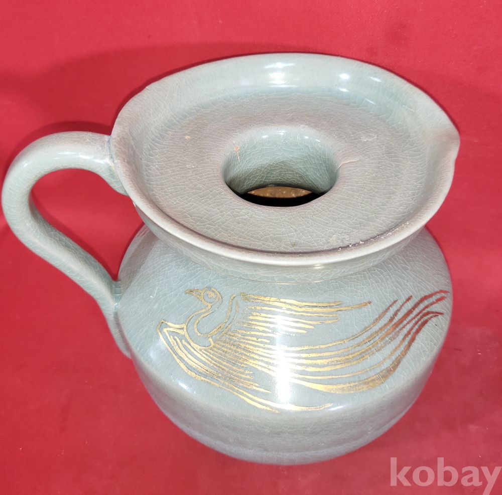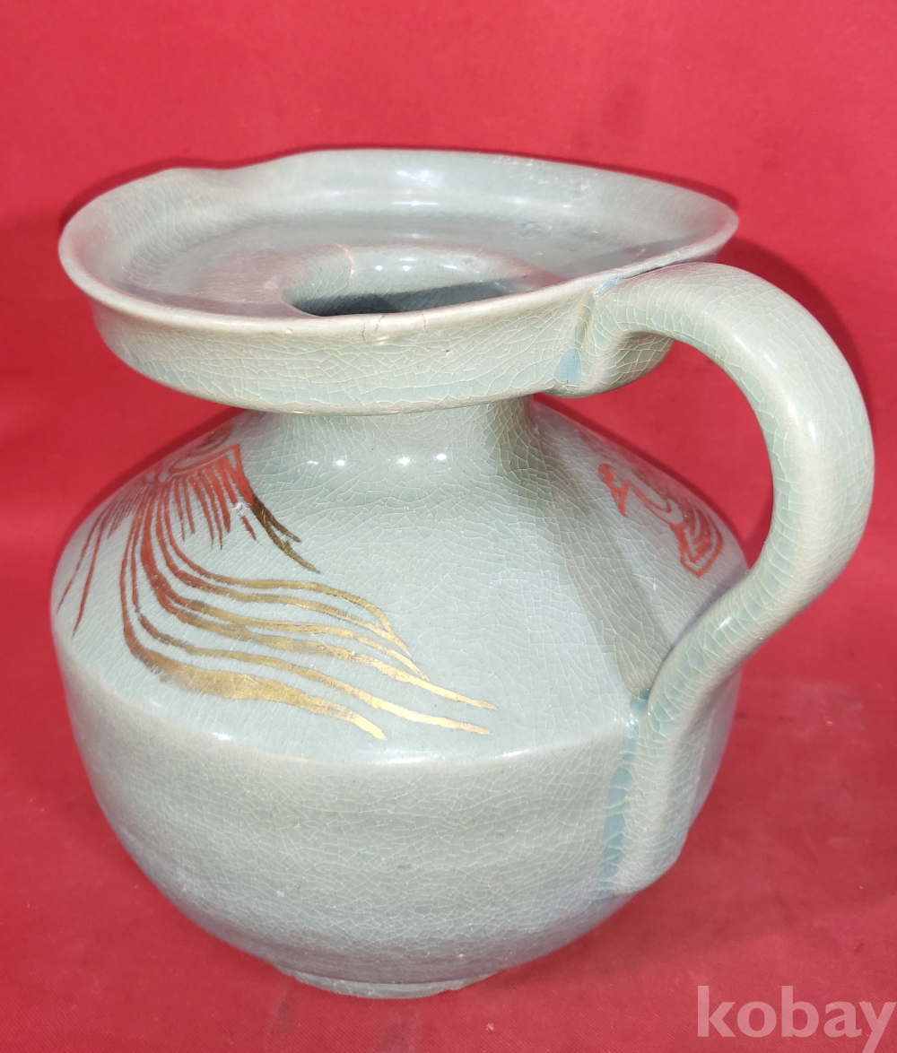 기물양쪽에 봉황(鳳凰) 문양이 금채(金彩) 로 옷을입고 도안으로 시문된 명품(名品)입니다,