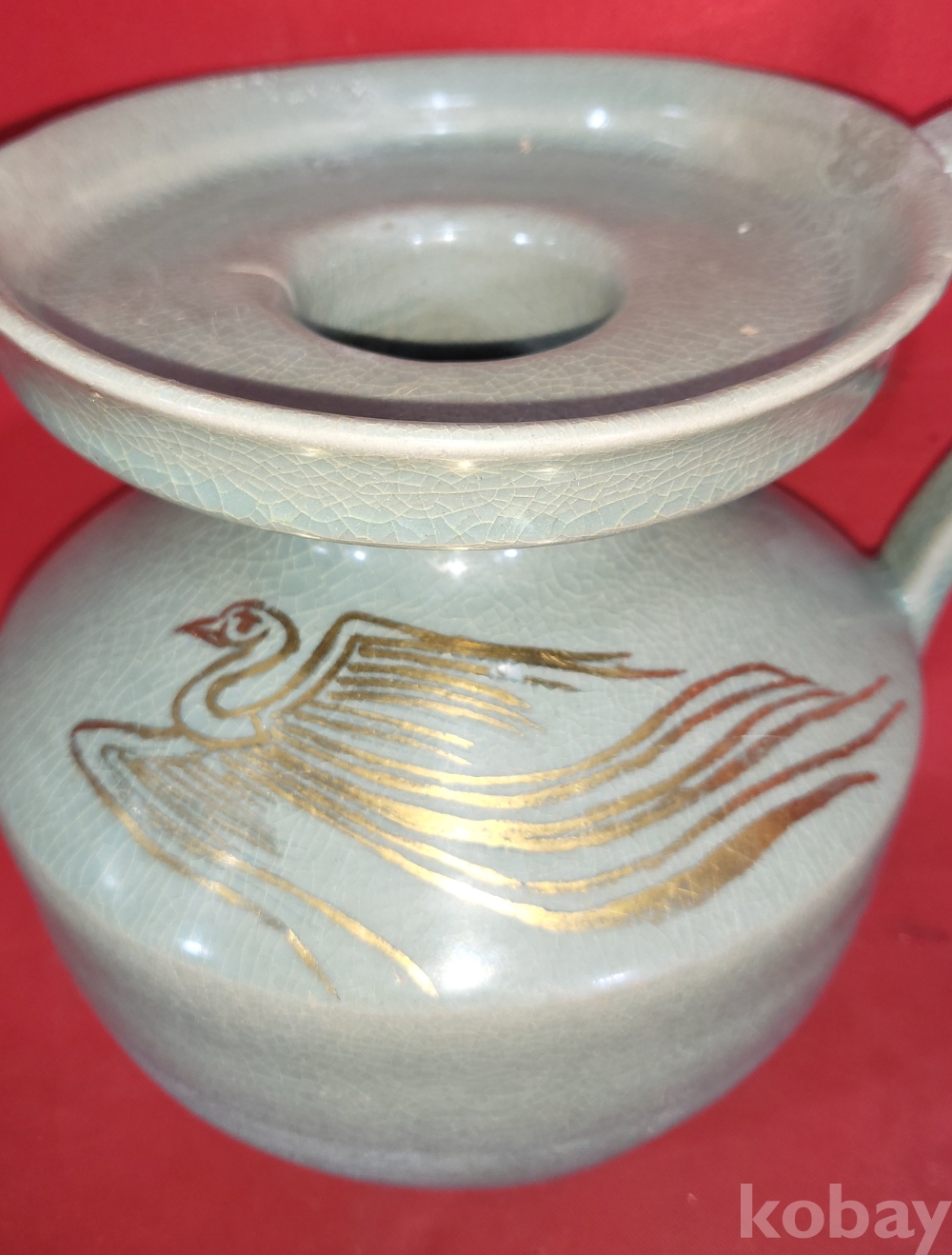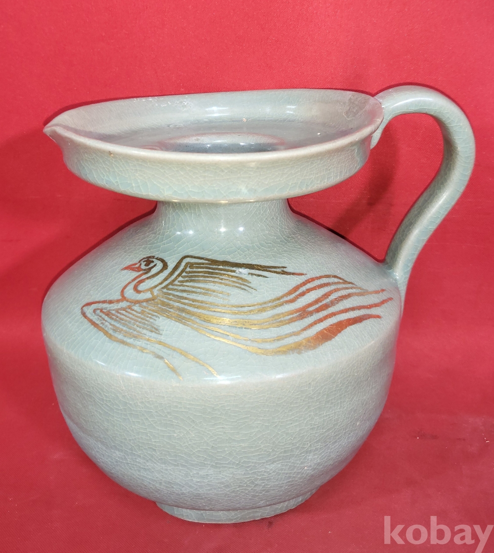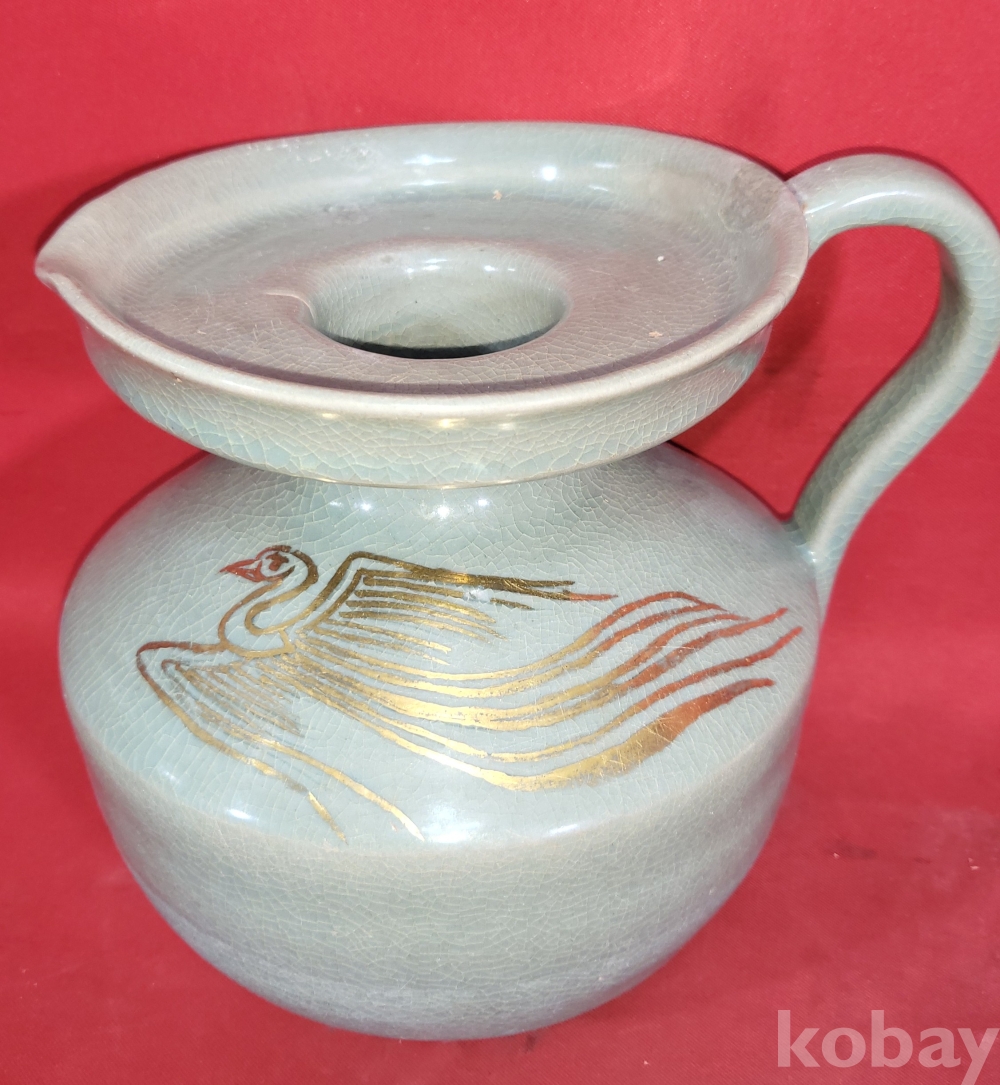 기물양쪽에 봉황(鳳凰) 문양이 금채(金彩) 로 옷을입고 도안으로 시문된 명품(名品)입니다,