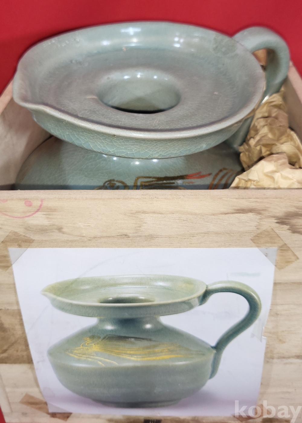 기물의 전체적인 느낌은 고도자기로 보이나 미감정이기에 진위는 알 수가 없습니다,
