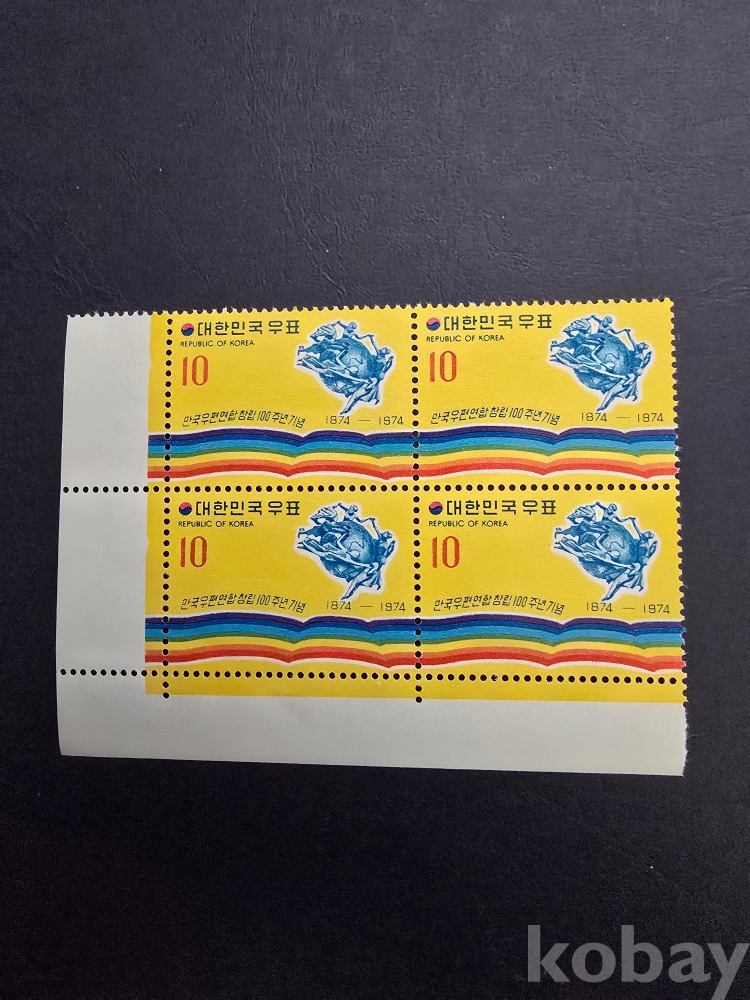 명판 우표 4B/L/74'10.9.만국우편연합창립.100주년1