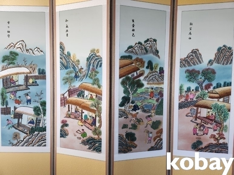하단부 2폭에 오염 있습니다.