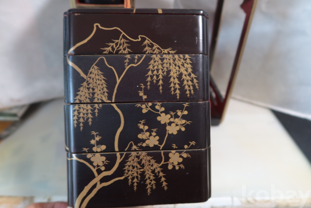 일본 칠기 도시락 세트 임니다 일본 유일의 문화공예품 칠기 명품 임니다 술병은 세월의 찌그러진 부분이 보임니다 섬세 정교한 명물 임니다 사진 참조 하세요