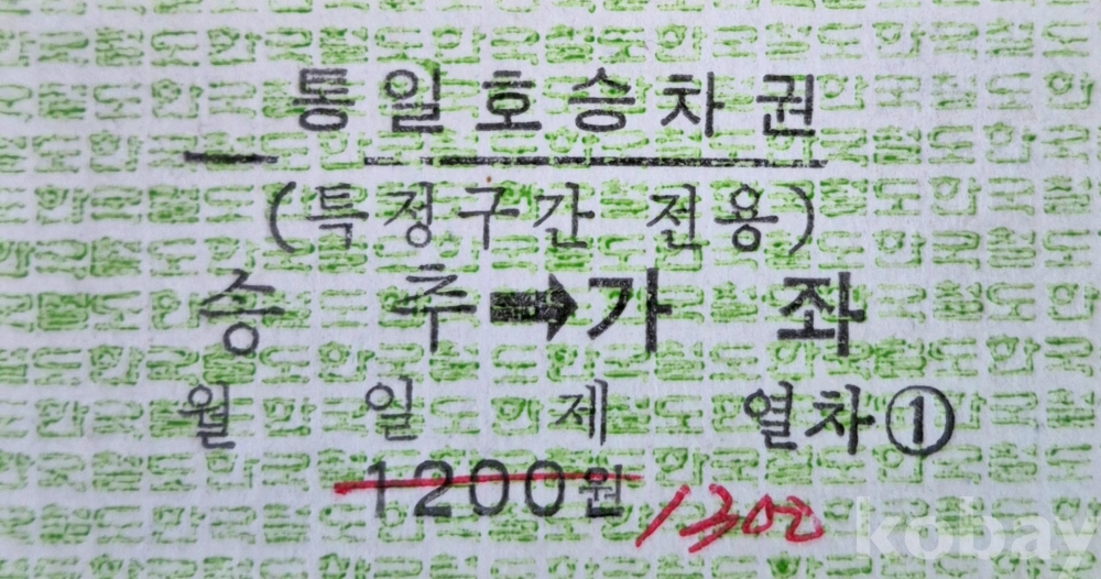 통일호 승차권 송추-가좌 초기형광권 일반입니다.
