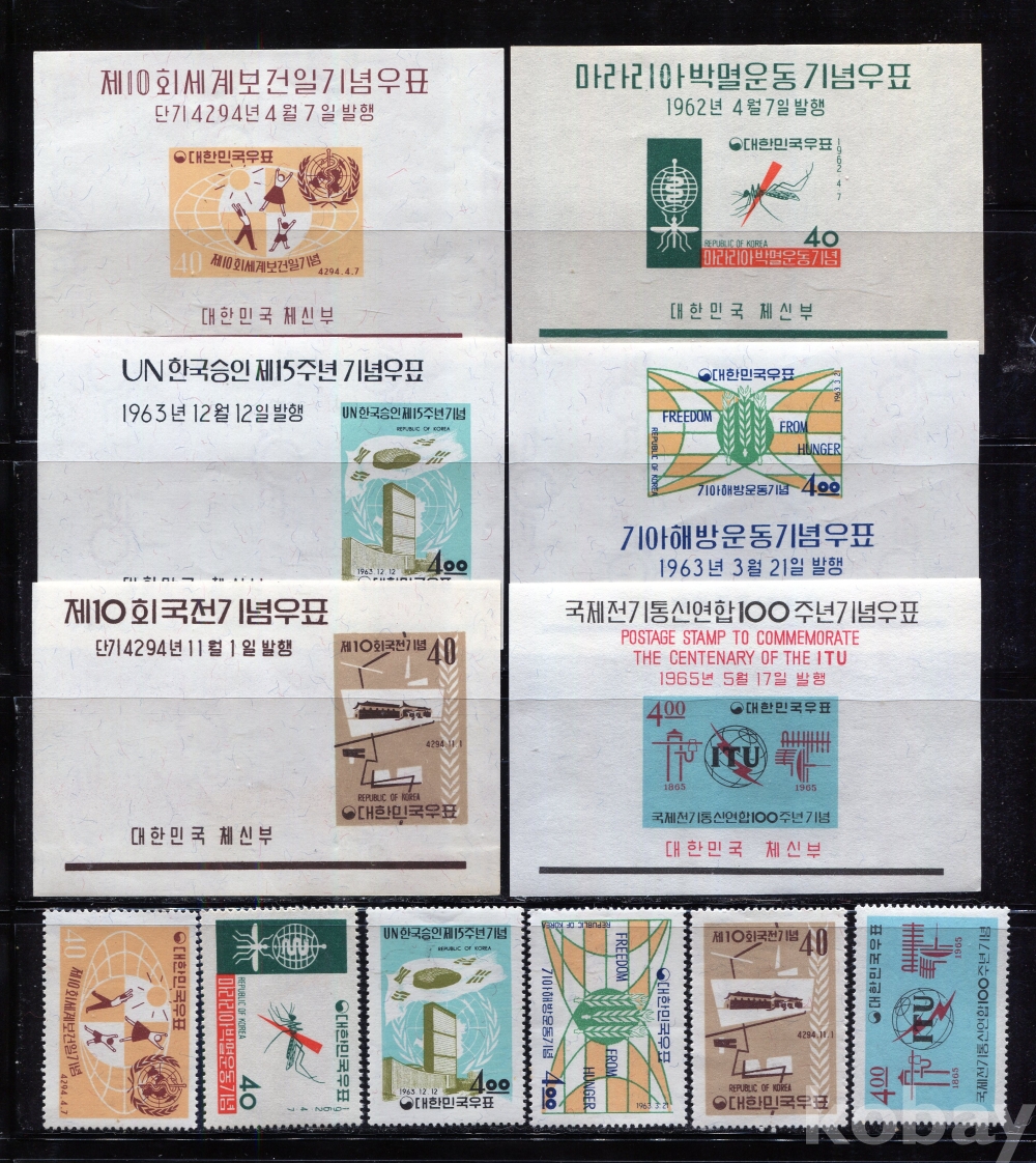 - [시트/우표] 1960년대 미사용 기념시트 및 우표모음 6종 2 (All MNH : Mint Not Hinged : 뒷면 힌지자국없이 깨끗한 상태)