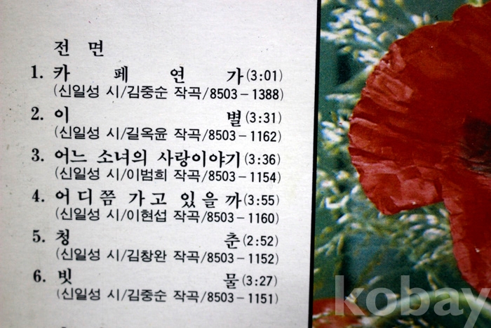 수록 곡 목은 사진을 참조하시기 바랍니다
